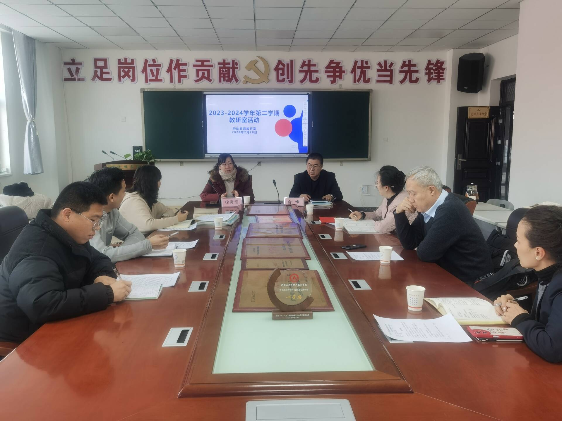 (俞峰 罗娟 报道)为推动我校大学生劳动教育课程建设与发展,增强《劳动教育》课程教学的针对性和有效性,提升教师教研水平,推进劳动育人。劳动教育教研室组织召开了本学期第一次集体备课会。2024年2月28日下午,学院劳动教育教研室主任俞峰主持活动,学院教务处徐海霞处长对本学期劳动教育课程教学内容提出了相关要求。大学生劳动教育教研室教师参加本次活动。