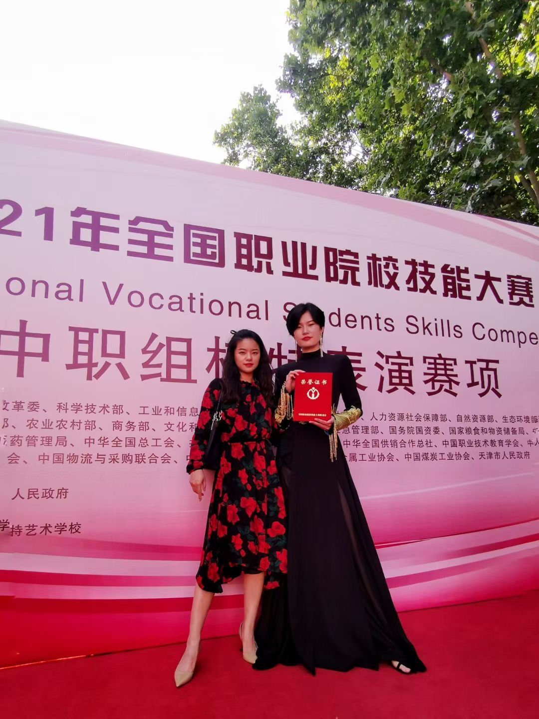 比赛内容及形式设计紧密结合中等职业学校服装展示与礼仪专业教学标准,检验课程体系建设的科学性和有效性,促进中等职业教育模特表演人才培养模式的改革与创新。功夫不负有心人,最终在全国职业院校技能大赛中荣获三等奖。赛后,弓老师表示:“本次比赛只是刘佳慧同学的一个起点,我也尽己所能助她一程,希望未来的路星光璀璨,前程似锦!”