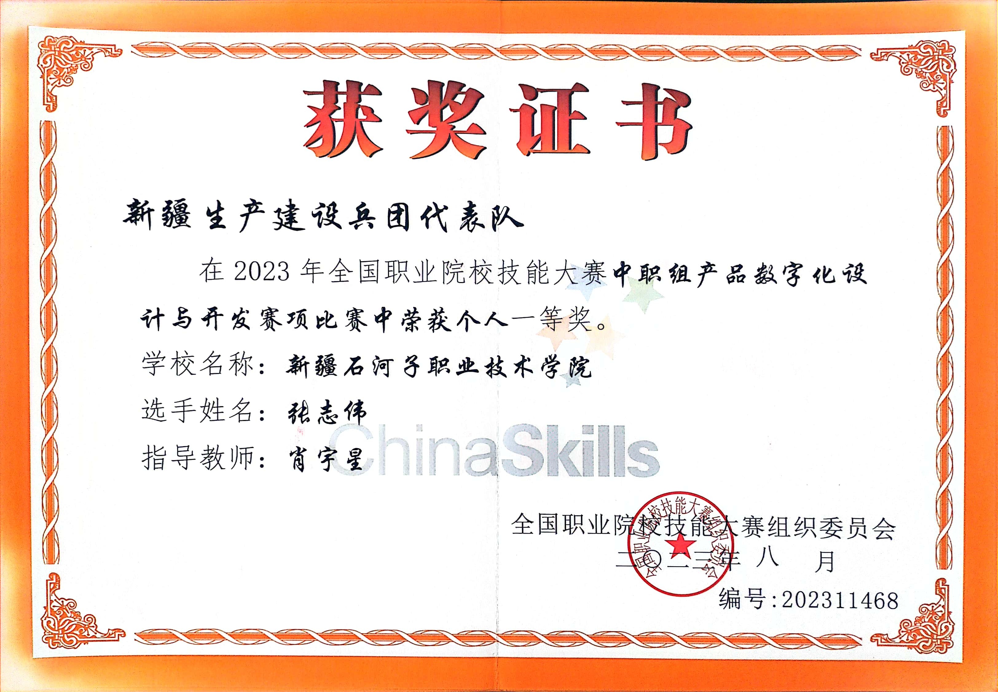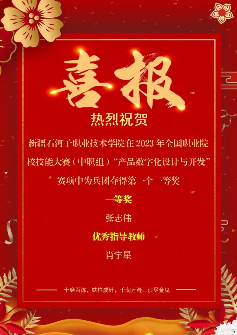(王需 杨慧 袁晓栋 徐萌萌)8月18日,2023年全国职业院校技能大赛(中职组)“产品数字化设计与开发”赛项在beat365唯一官方网站圆满落幕。来自全国省、自治区、直辖市、新疆生产建设兵团、计划单列市的102支代表队参加了该赛项,是历届比赛中参与院校最多的一次。学院派出的参赛选手张志伟获一等奖,指导教师肖宇星优秀指导教师奖,此次获奖也是兵团参加全国职业院校技能大赛以来首次获得国赛一等奖,实现了兵团职业院校技能大赛国赛一等奖“零”的突破。