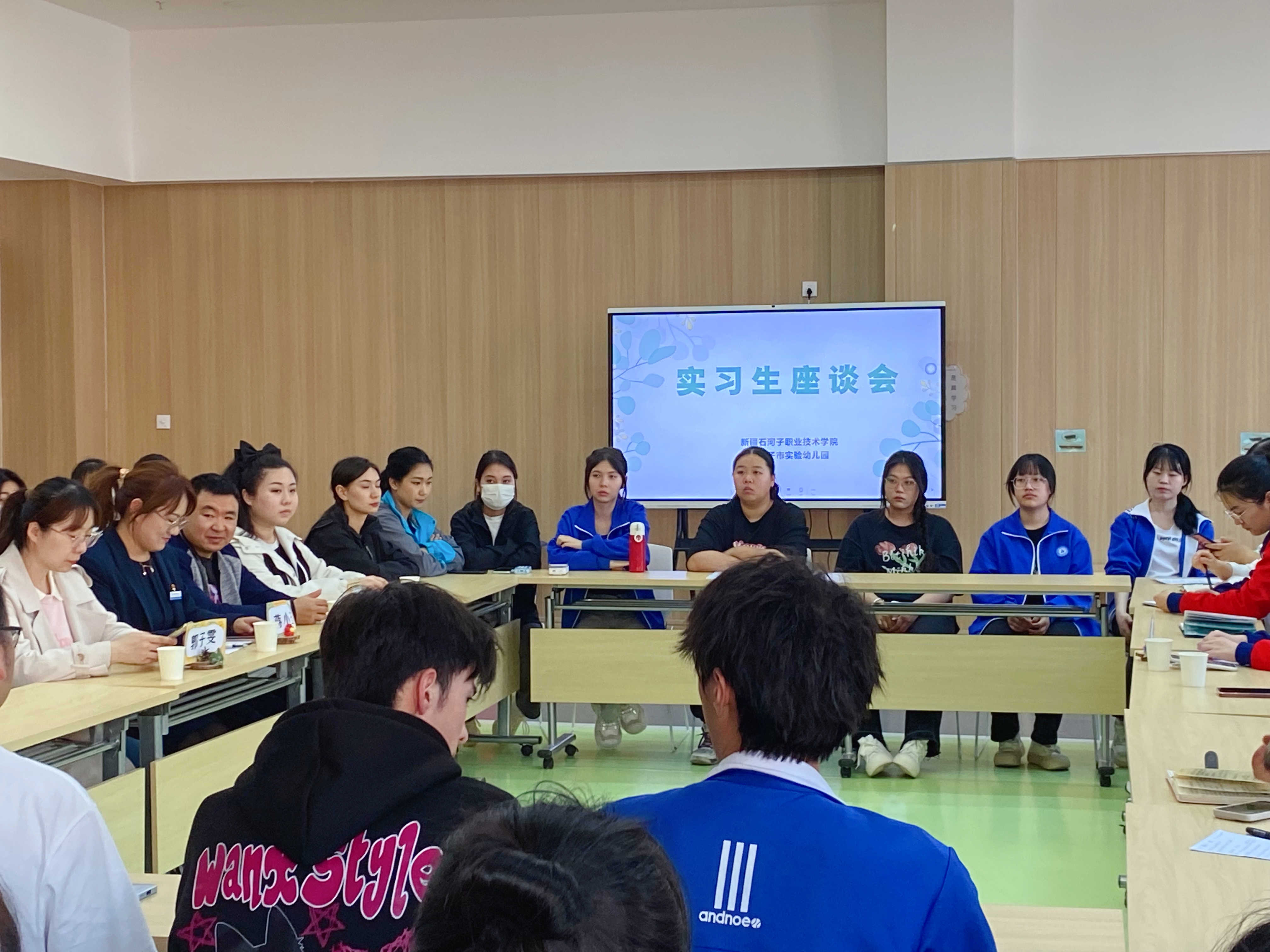 (刘炫坊 报道)2024年3月29日下午17点,现代服务学院学前教育专业实习生座谈会在石河子市实验幼儿园举行。现代服务学院院长蒋小玉,石河子市实验幼儿园副园长马晓及现代服务学院66名实习生们参与了座谈会。