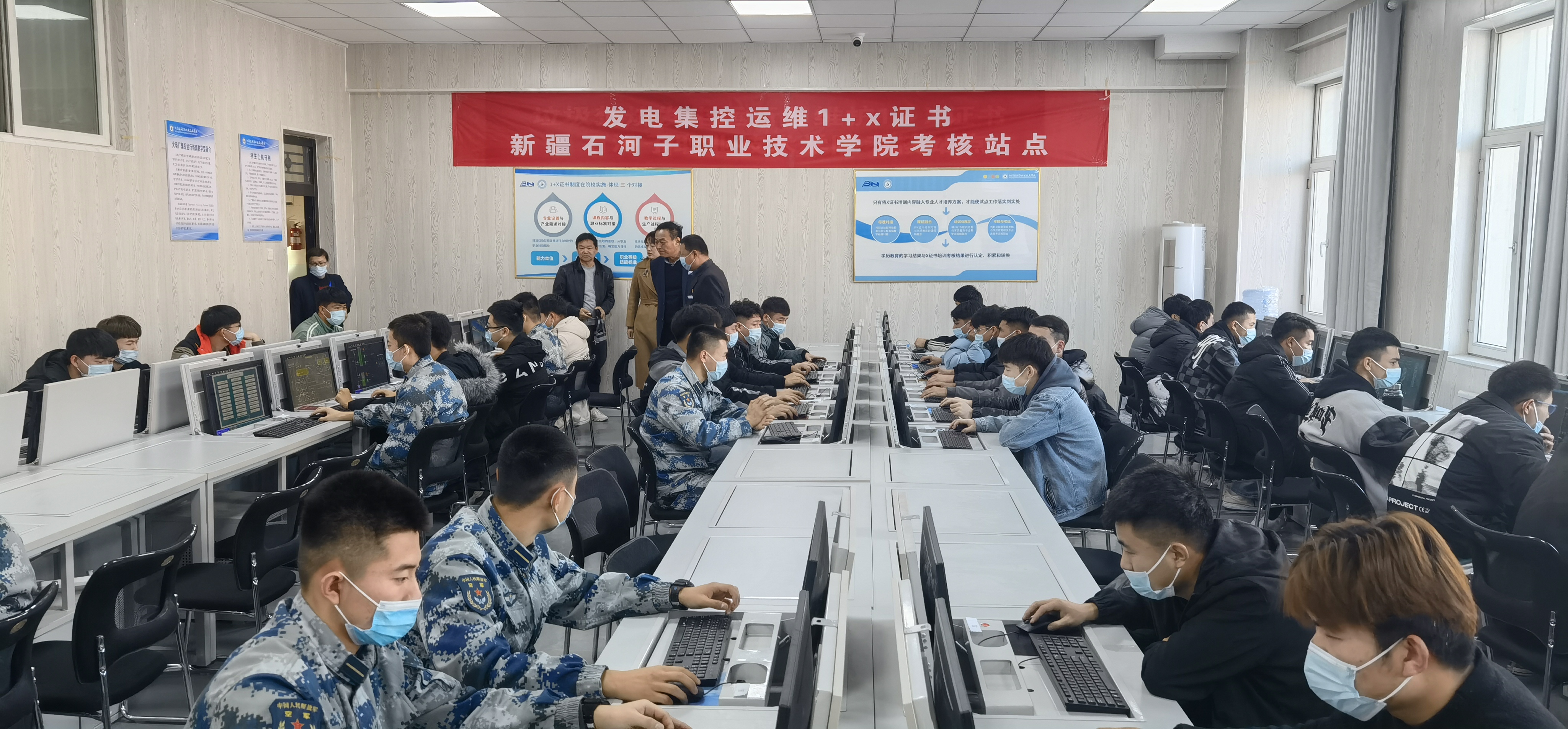 分院领导高度重视此次发电集控运维“1+X”职业技能等级考试工作,考前组织考务会,严格要求、分工明确、责任到人。考试过程严格执行考试规范、平稳有序、全程录像。考试内容包括理论考核和实操考核两个科目,考试合格者获得博努力培训中心颁发的发电集控运维职业技能等级认证(中级)证书。学院党委书记史文革、副院长马彩梅亲临考试现场进行指导巡视,分院顺利完成了此项工作。