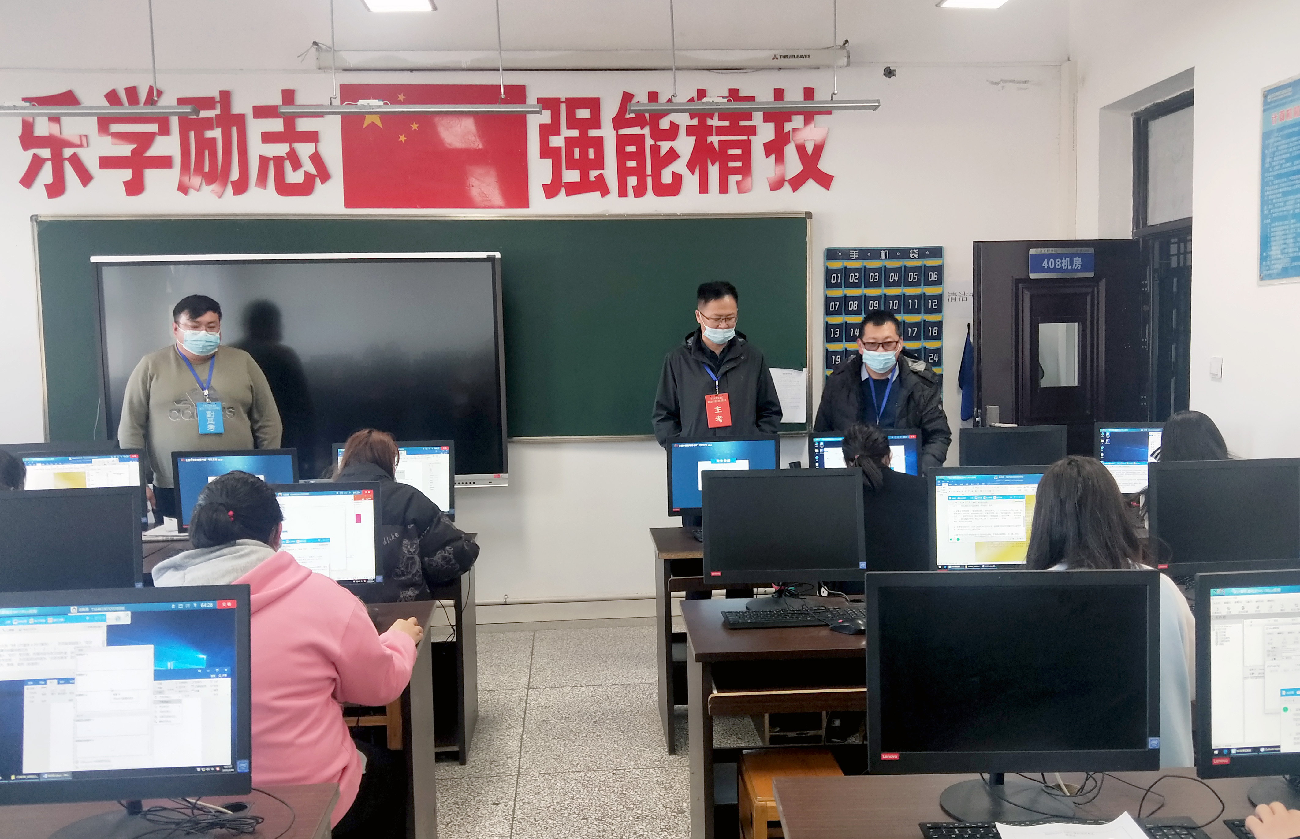 考试期间,学院党委书记史文革、党政办主任张金果等巡视人员亲临考试现场进行指导。考试过程中,各监考教师能够认真负责,严格执行全国计算机等级考试监考人员相关规定,杜绝违纪情况发生,本次考试无一人违纪。