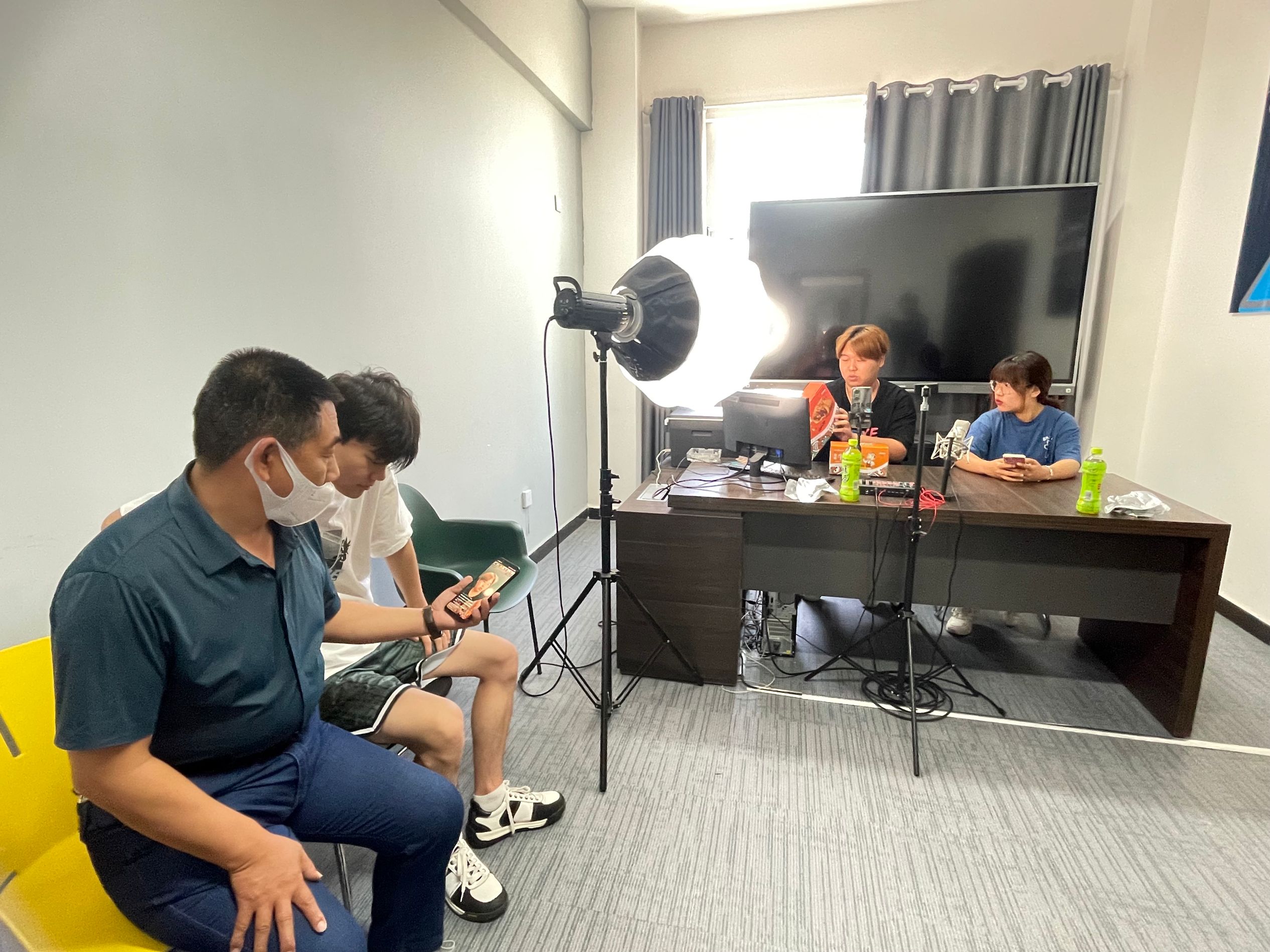 (杨瑷烛报道)2022年6月3日,旅游与经济管理分院书记党博文、分院院长栗劲松及电商专业教师,赴玛纳斯县公共就业服务局产教融合基地直播教学点走访慰问端午假期依然坚守在实训岗位上的学生们,为他们带来悉心关怀和节日慰问。