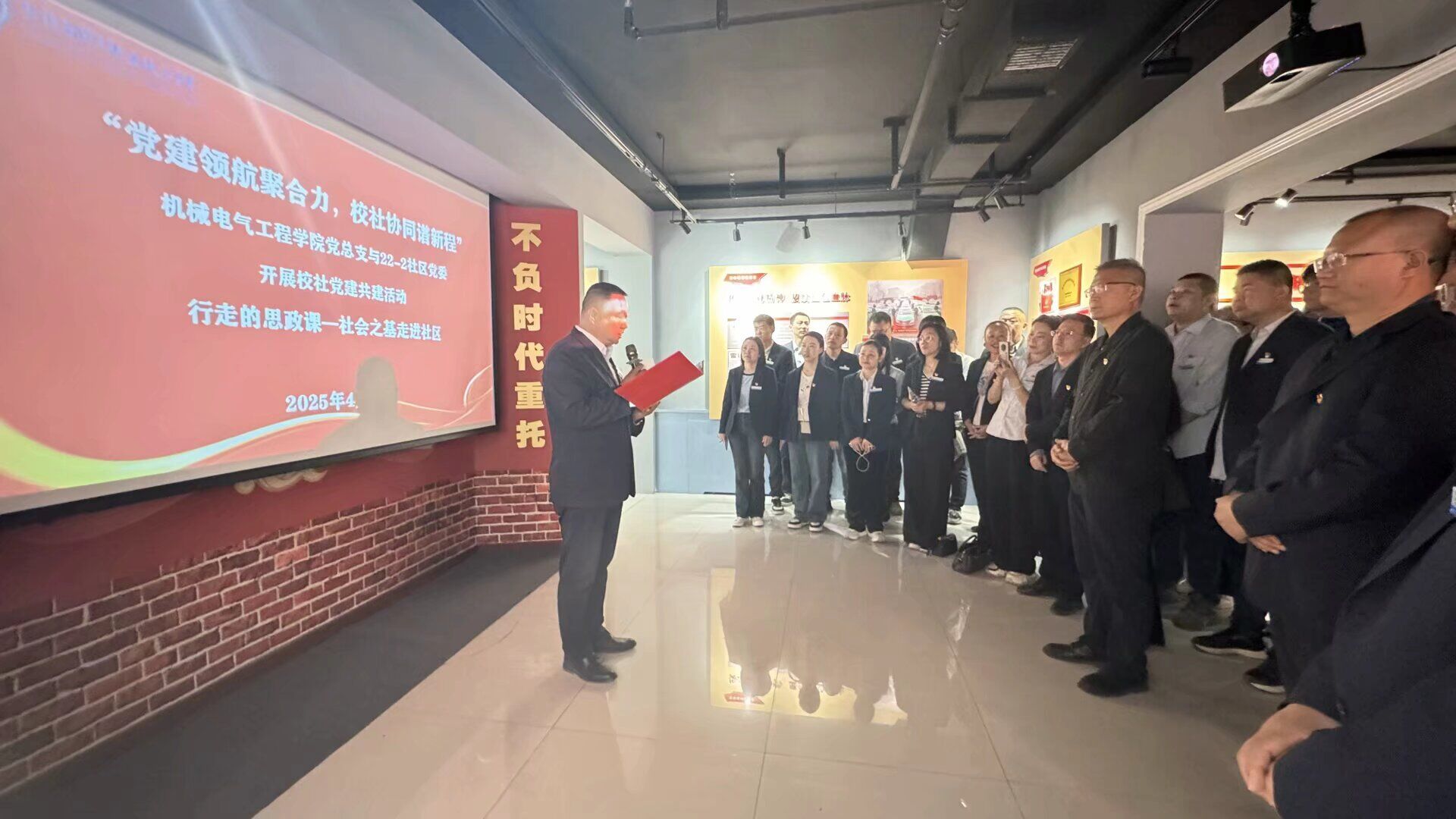 22社区党委书记夏中华从组织建设联抓、党员教育联学、志愿服务联动等方面,提出要与学校共同打造“高校+社区”党建共同体。机电学院党总支书辛延波表示,学院将结合专业特色,开展家电维修、科普宣讲等惠民服务,让党建成果惠及群众。在雷锋精神传承馆,全体师生通过珍贵的历史影像和实物展陈,深入学习雷锋同志“干一行爱一行”的敬业精神和“螺丝钉”品格。夏书记还为大家动情讲述雷锋故事,青年学子围坐聆听,展开“新时代如何践行雷锋精神”的讨论。学生代表刘赤感慨道:“雷锋精神体现在日常点滴,作为机械专业学生,我们要用技能服务社会,做一颗‘永不生锈的螺丝钉’。”