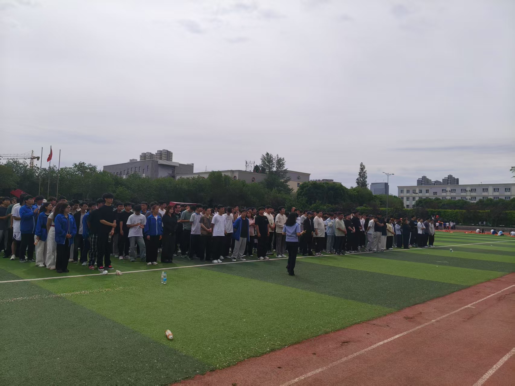 上午11时30分,随着防空警报声在机电教学楼内骤然响起,演练正式启动,在各楼层疏导员的指引下,同学们弯腰捂鼻,沿预定逃生路线迅速撤离,仅用时2分15秒,教学楼内全体师生抵达一期操场集合点。东三路派出所教导员廖天骥警官在演练结束后强调,提升紧急突发安全事件处置的能力的重要性,要求师生尽快掌握在危险中迅速逃生、自救互救的基本方法和应对紧急突发事件的能力。