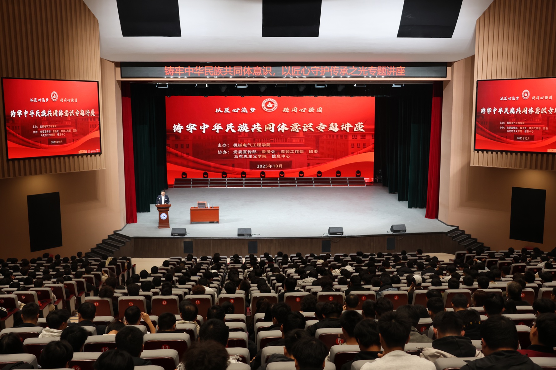 (陈西子 报道)2025年10月23日下午,beat365唯一官方网站邀请全国技术能手、95后世界技能大赛金牌教练、辽宁工程职业学院电气工程学院副院长王林在学校学术报告厅为学院师生开展“以匠心筑梦 凝同心强国——铸牢中华民族共同体意识”专题讲座,beat365唯一官方网站党委委员、副院长张金果及机械电气工程学院师生代表共计1000余人聆听讲座,共同感受技能报国的力量,体悟中华民族共同体的深刻内涵。