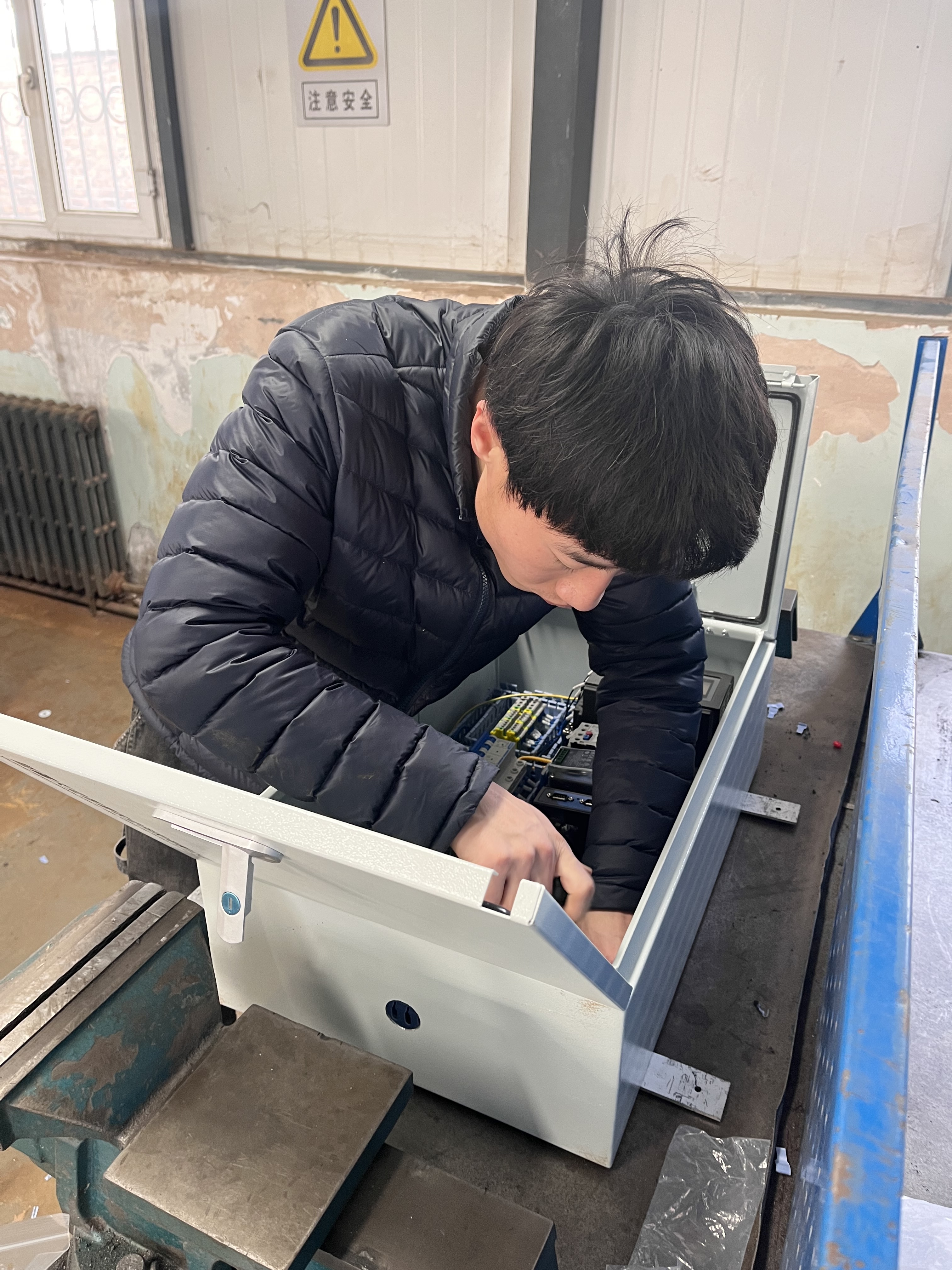 2024年2月23日,机械电气工程学院党总支书记辛延波、副院长尹君对钳工实训室施肥一体机加工项目式教学开展情况进行了检查,详细了解了学生对实训技能的掌握情况以及遇到的困难。从检查情况来看,实训教学有序推进、实训设备安排到位,实训学生认真负责。