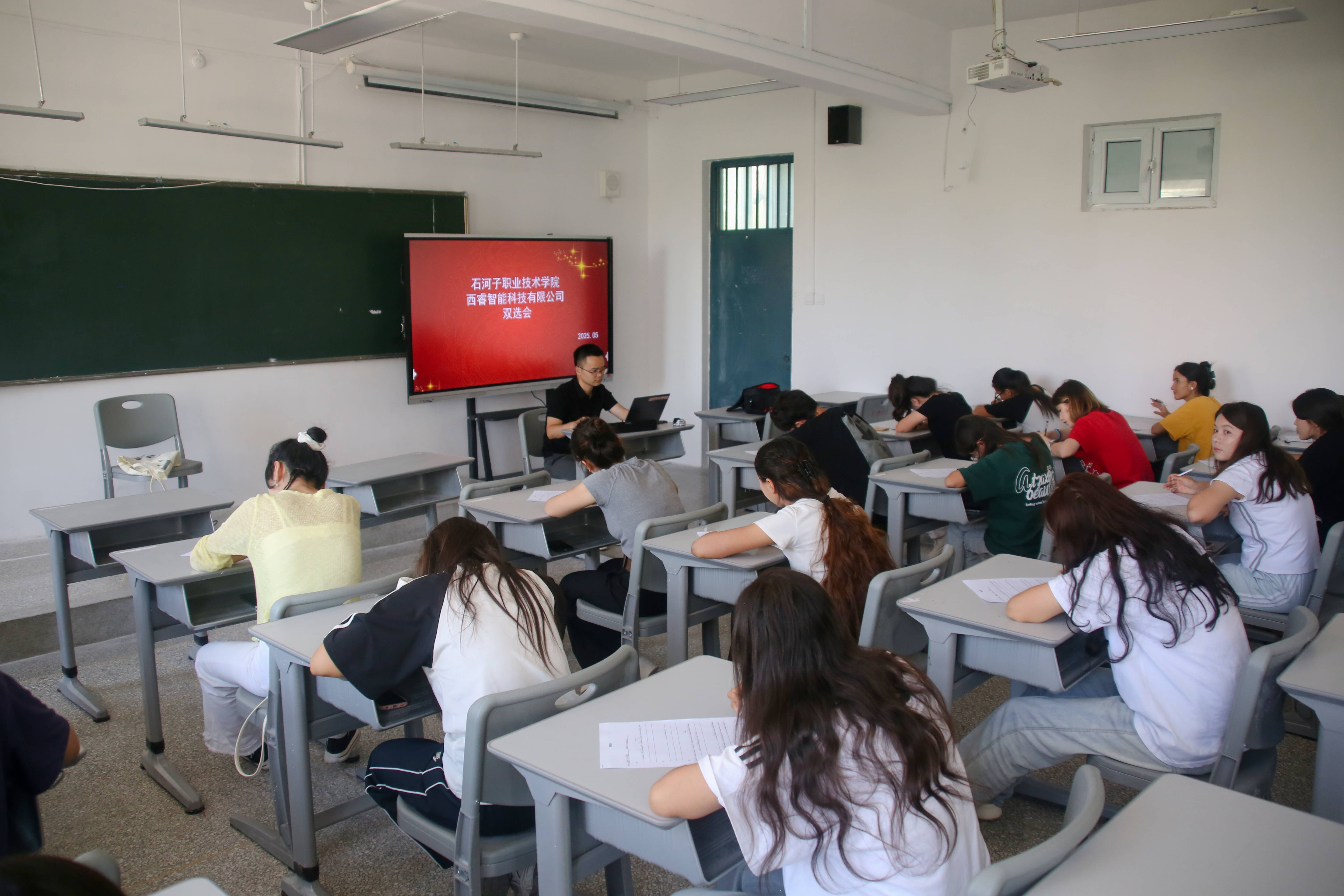 活动现场,新疆西睿智能网络科技有限公司翟钐钐以“智能时代的职业新图景”为主题开展专题宣讲,解析AI数据标注核心岗位的能力要求,并设“跨文化职场沟通”环节回应民族学生关切。现场开展结构化面试,针对即将参与实习的23届学生,设置“案例实操-综合面试”双考核环节,全面考察学生综合能力与岗位匹配度。双选会结束后,双方围绕实习就业深入交流,企业提出“三精准”就业方案。学院表示将深化课程共建、师资互聘等合作,构建“招生-培养-就业”全链条少数民族人才培育体系。