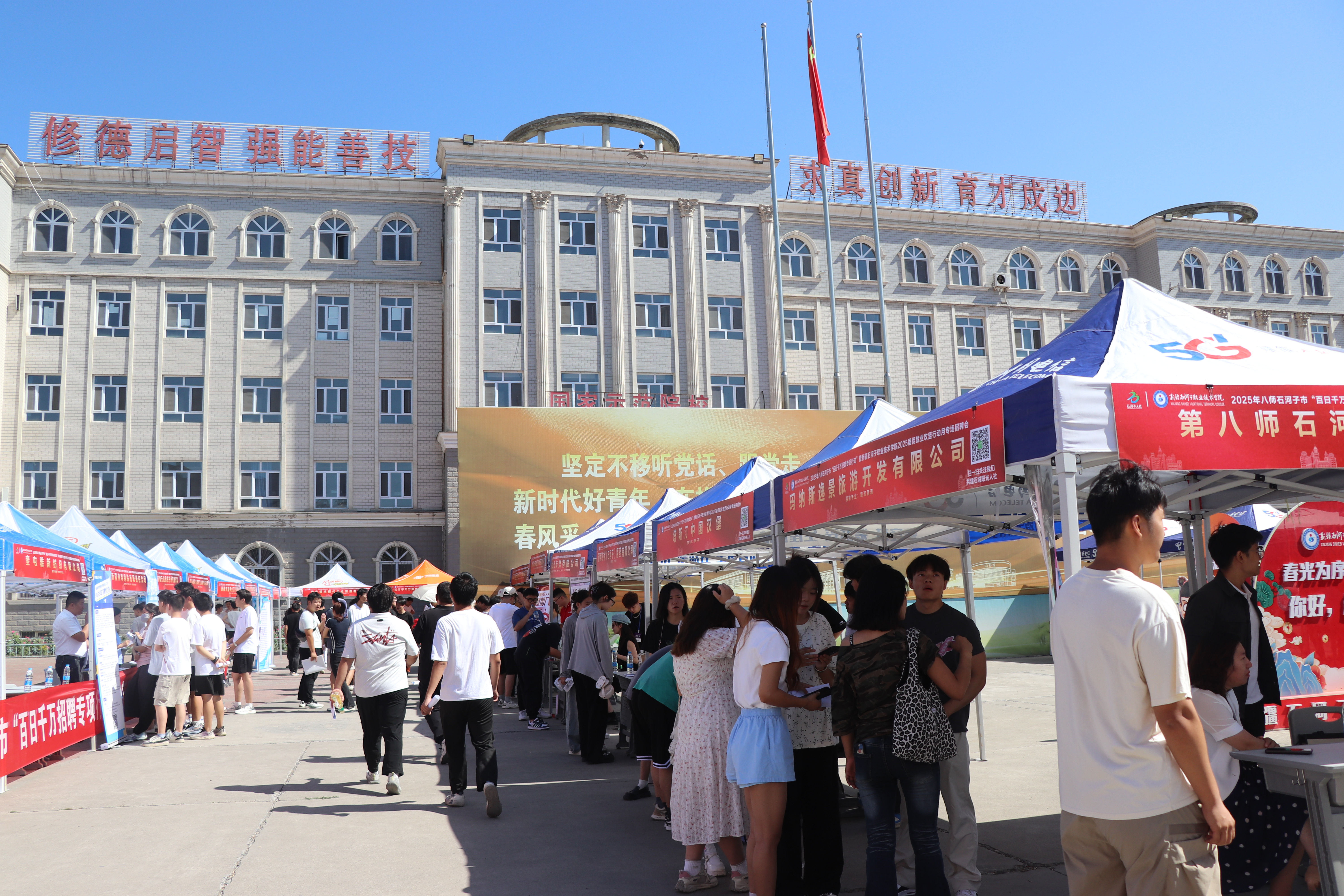 6月25日,学校在工字楼前楼广场举办2025年就业攻坚月招聘会,本次招聘会吸引50余家优质企业及政府部门参与,提供近千个与学院专业高度契合的岗位,覆盖装备制造、新材料、新能源、建筑工程、食品加工、护理等多个领域。岗位类型丰富多样,充分满足不同专业毕业生的就业需求,实现了毕业生供给与企业需求的精准对接。300余名毕业生与企业达成初步就业意向,为区域产业发展注入新生力量。