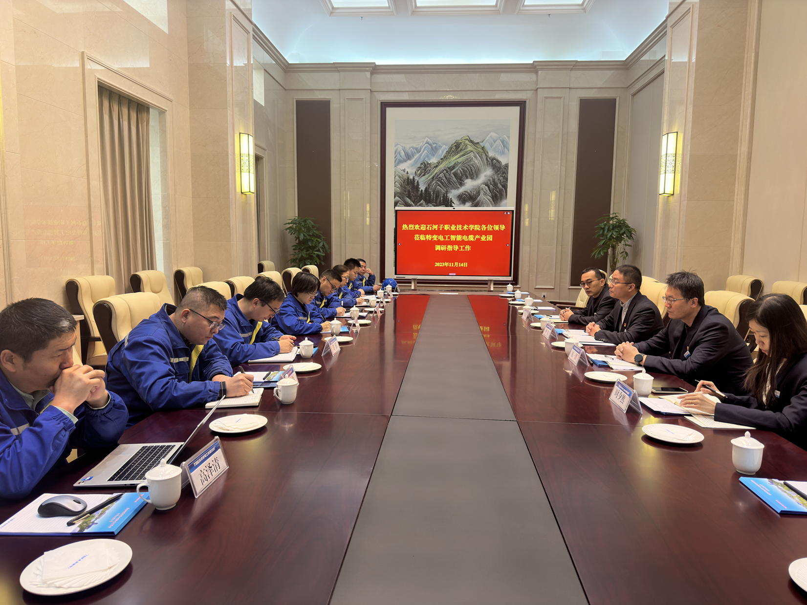 王振坤 报道为全面贯彻落实党的二十大精神,深化教育教学改革,探索建立人才培养与企业对口共建、协同发展、互利共赢机制,深化产教融合、校企合作,助力学院提质培优高质量发展,2023年11月14日至15日,机械电气工程分院副院长尹君带领自动化教研室、机电一体化教研室、机械制造及自动化教研室、分院教务办公室及分院实习就业办公室十三名教师对特变电工股份有限公司新疆线缆厂和新疆众和股份有限公司两家企业开展走访调研。