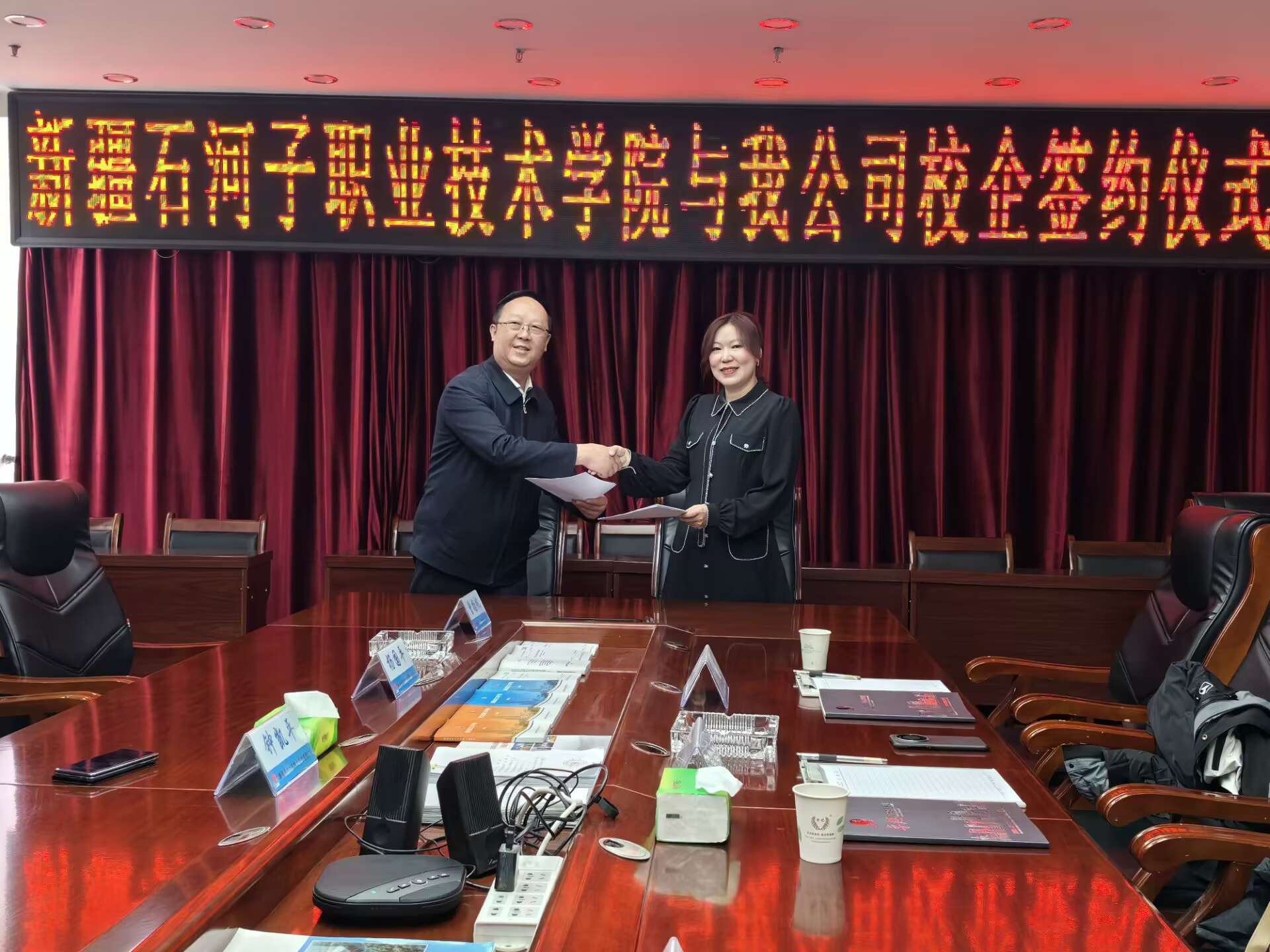 新疆卓越工程项目管理有限公司董事长钟凯平在座谈中表示,学院教师丰富的理论基础和实践经验促使此次企业员工培训达到了良好的效果,在后续的员工培训中将继续与学院深度合作。张婷院长表示,学院将利用好优势和资源支持企业发展,希望企业能根据相关专业技术岗位需求面向学院实习、就业的学子展开招聘。校企双方就合作培训细节进行深入细致的协商,双方代表在与会成员的共同见证下共同签订了校企培训协议,企业将邀请部分学院教师参与年度企业员工培训,提高培训效果与质量。