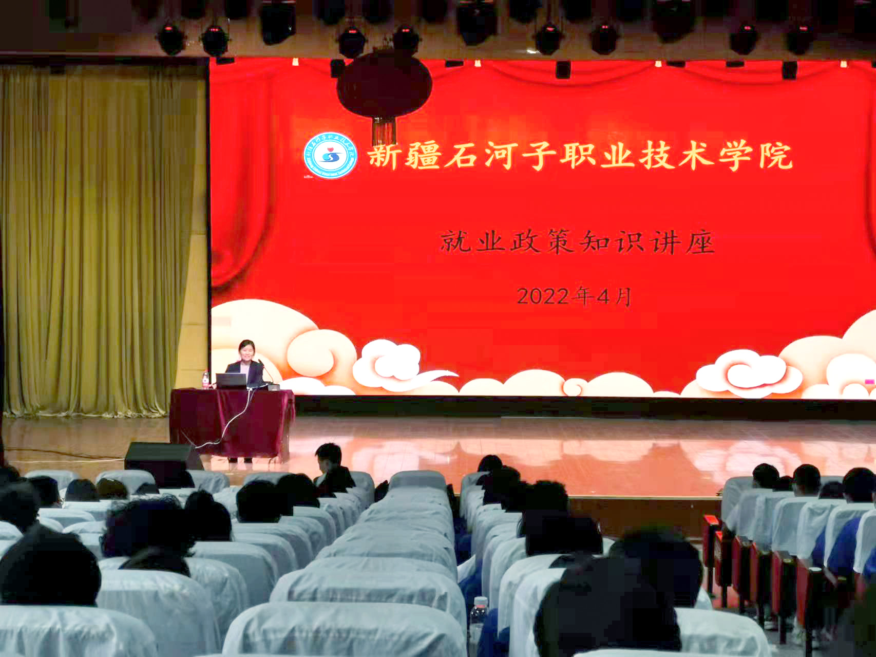 2022年4月24日下午,为丰富“就业促进周”活动内容,提升毕业生求职能力,学院就业办邀请石河子市人力资源和社会保障局人力资源服务中心曹新月主任来学院开展“公共就业政策进校园”讲座,此次讲座在我院综合楼四楼阶梯教室举行,两百余名师生参加了此次活动。曹新月主任用生动的语言、鲜明的事例,围绕国家对大学生就业创业的政策扶持、困难群体毕业生帮扶措施、大学生职业生涯规划等方面进行了深入浅出地讲解。通过讲座,同学们对就业形势有了基本的了解,也对后期如何找到心仪的工作有了更清晰的认识,为同学们未来的求职之路指明了方向。