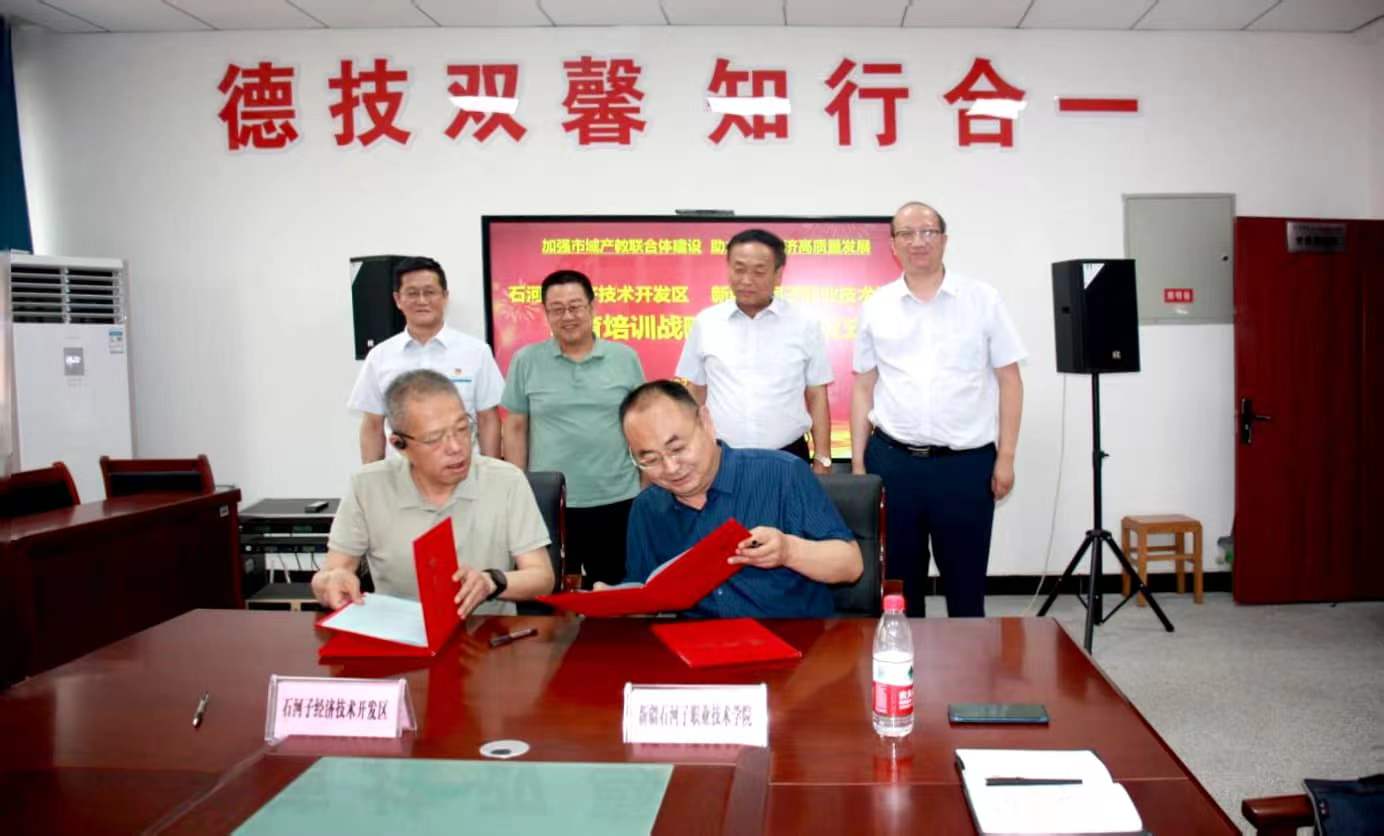 为加强市域产教联合体建设,助力区域经济高质量发展,6月14日,石河子经济技术开发区与beat365唯一官方网站教育培训战略合作签约仪式在学院党员活动室举行,石河子开发区应急管理中心主任毕克,学院党委书记史文革、纪委书记张涛出席,纪委书记张涛主持签约仪式。