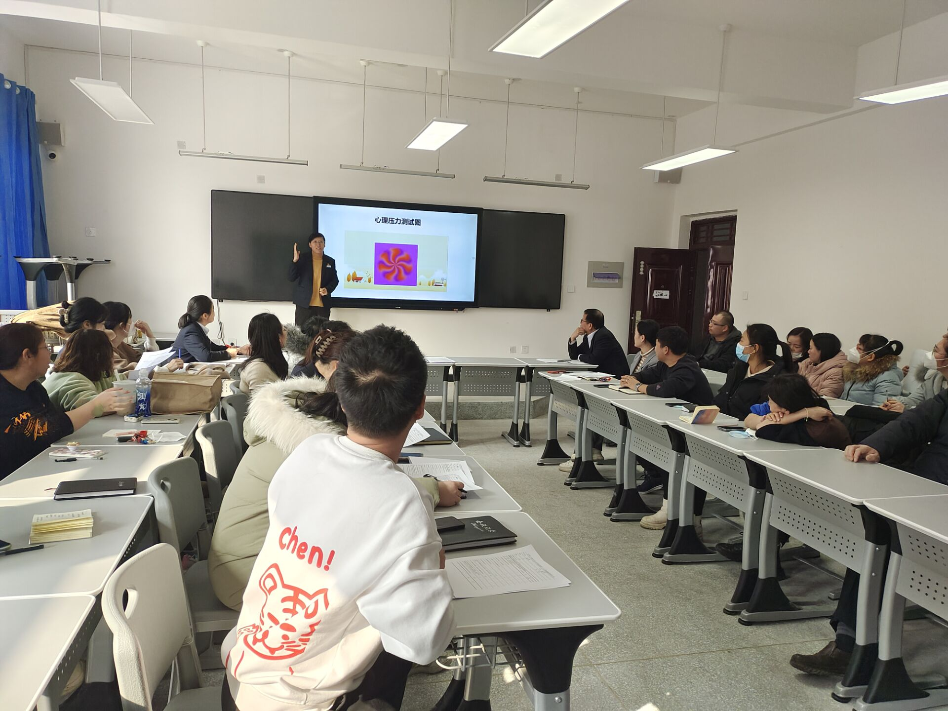 2月22日分院邀请了学生处心理咨询室韩玲老师为全体班主任开展了心理健康教育培训。韩老师通过讲述自己缓解焦虑和压力的办法,帮助老师们找到属于自己舒缓情绪的点,学会在充满不确定的生活中给自己一个锚点,学会自我关怀、体会自我想法。