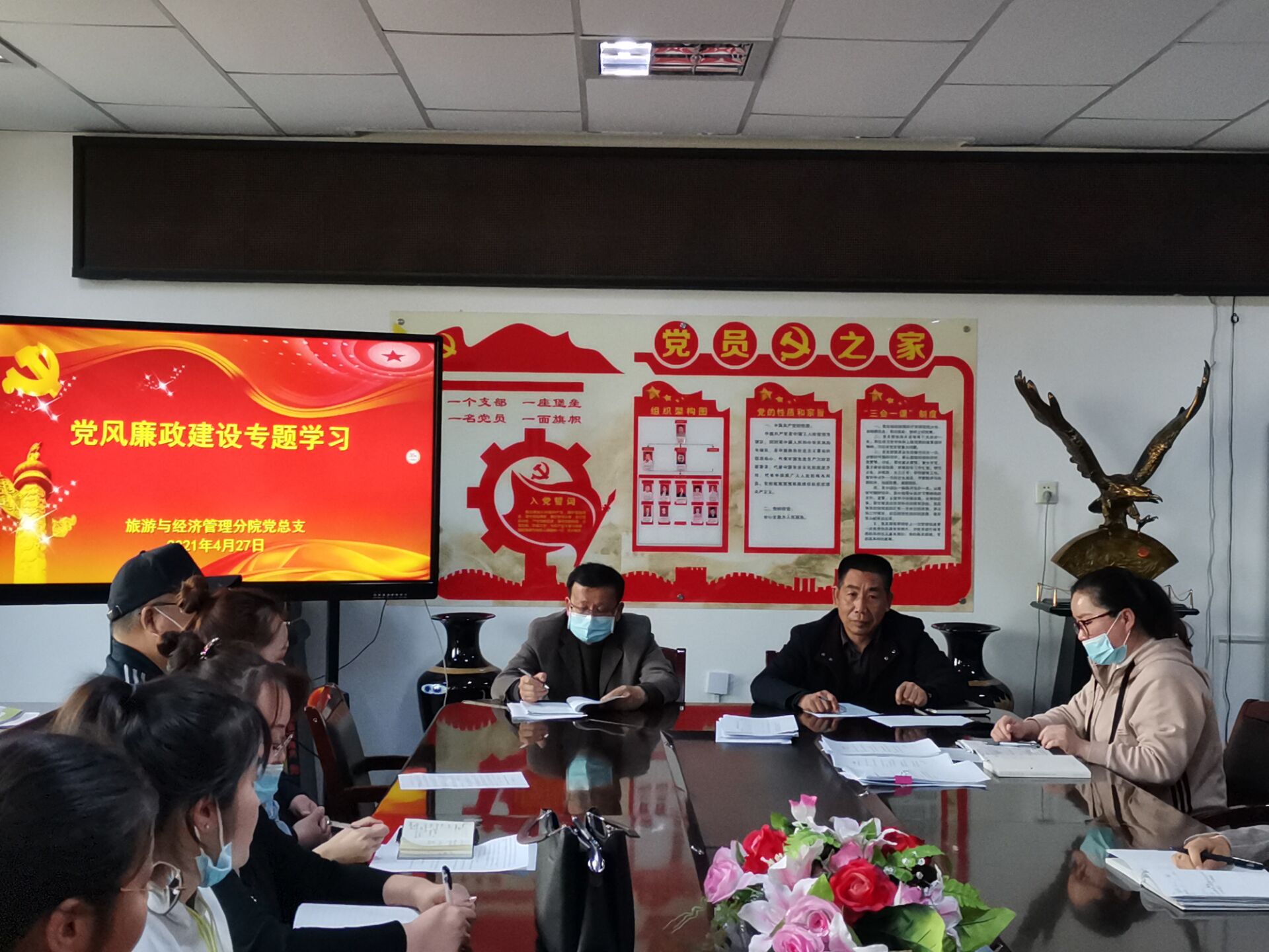 为认真落实“立德树人”根本任务,促进党风廉政建设和师风师德建设落地生根,2021年4月27日下午18点,经贸分院全体教职工在教学楼前楼三楼会议室开展党纪党风专题教育,结合工作实际,对党风廉政建设和师风师德警示教育工作做安排部署。