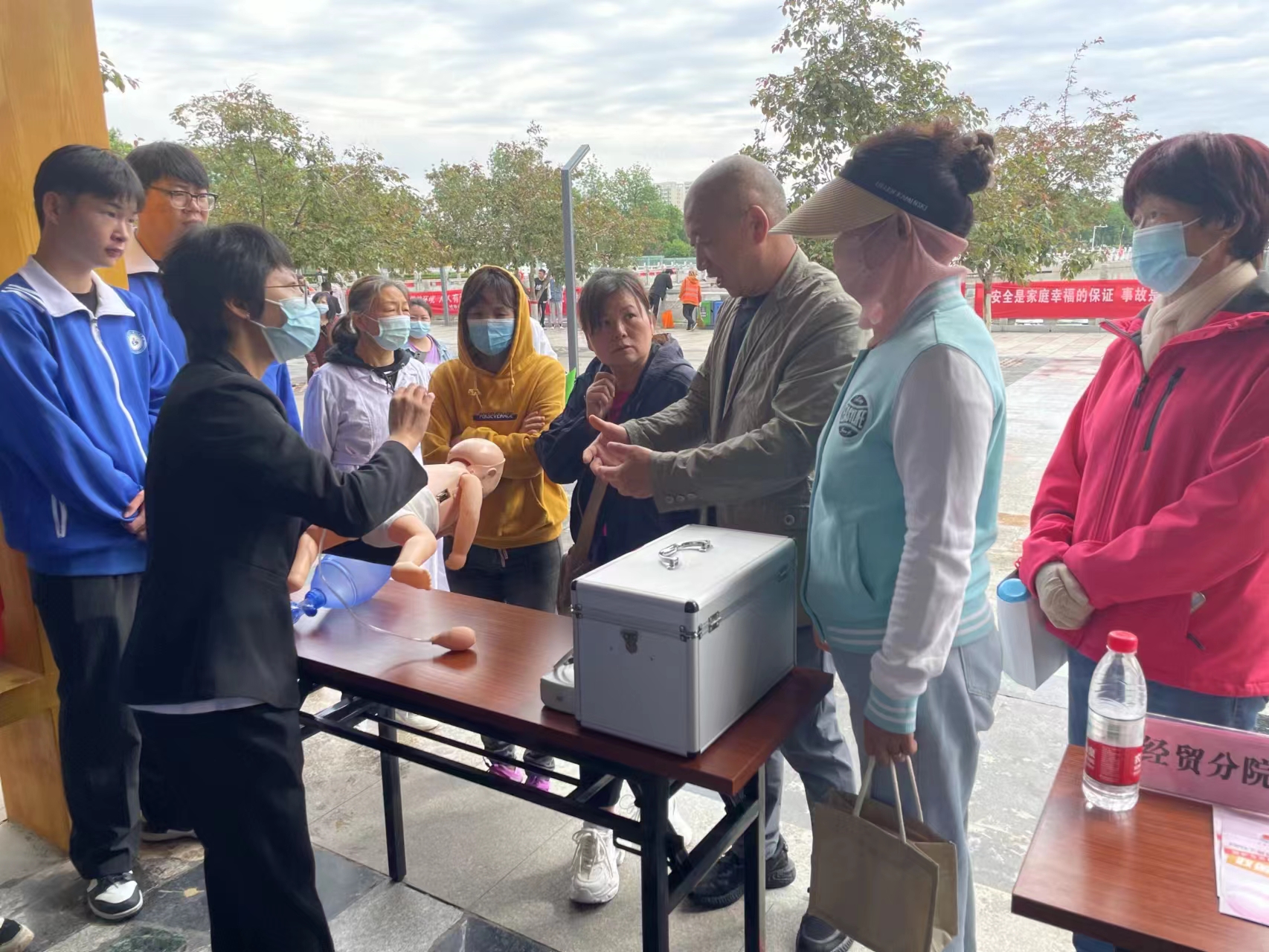 活动现场,红色醒目的横幅、宣传册和可爱的婴儿模拟人吸引了大批社区居民,他们纷纷来咨询。大数据与会计专业师生联合税务局工作人员,为居民进行2023财税新政策解读,并对居民的税收相关问题一一进行解答;护理专业师生还为居民进行了专业的心肺复苏及海姆立克急救法的演示和讲解。“我们一位同事去年就是用了这样的方式,赢得了宝贵的抢救时间,回到了我们身边,这些抢救方法太实用了,关键时刻能救命!”居民赵大姐看到师生的演示激动地说。