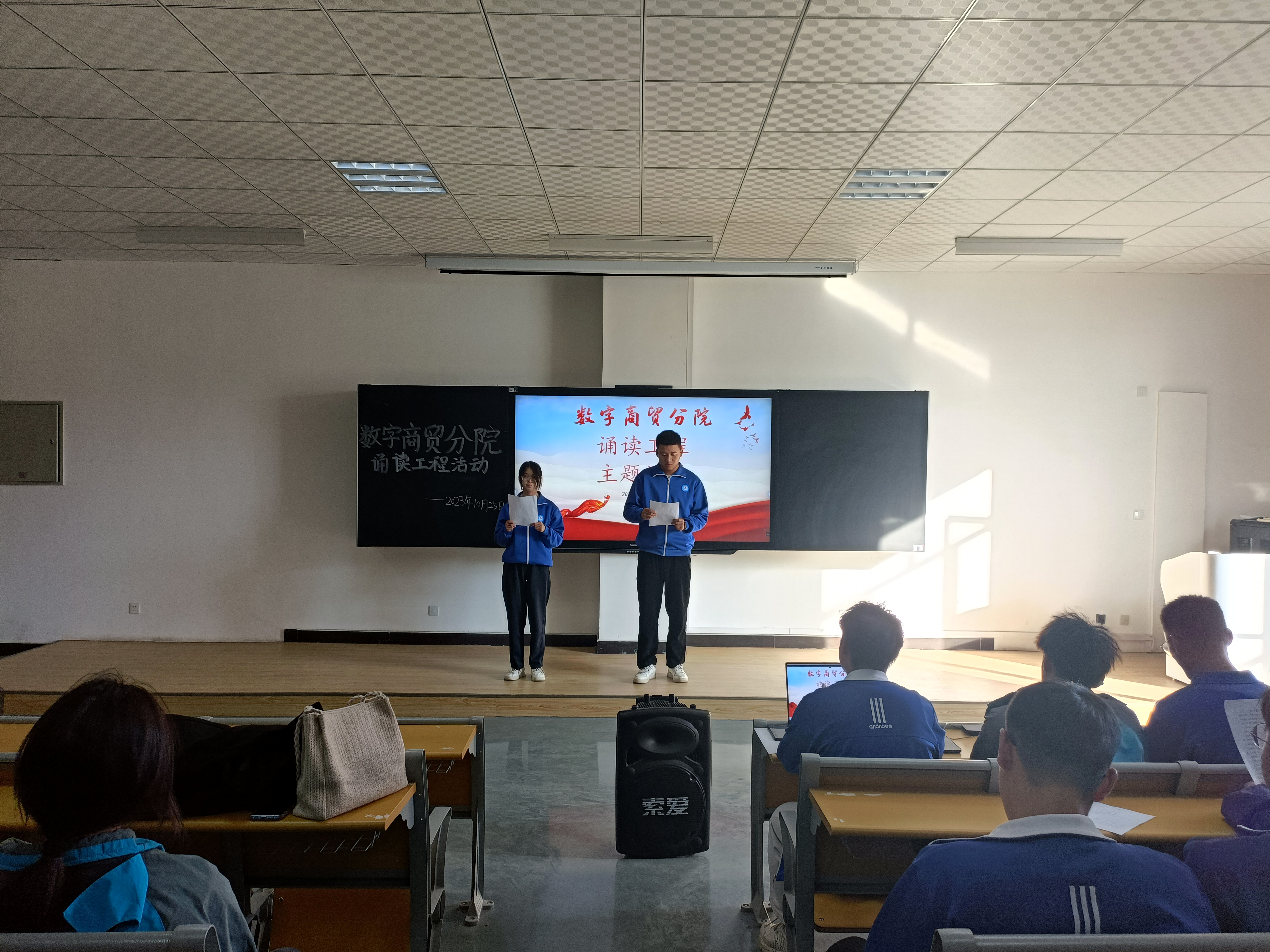 (傅冬 报道)为贯彻落实习近平新时代中国特色社会主义思想和党的二十大精神,落实兵团党委“延续城市文脉、讲好城市故事、突出兵团特色”文化要求,打造“中国诗歌之城”靓丽名片,丰富学院校园文化建设与发展,10月25日下午,beat365唯一官方网站数字商贸分院“诵读展风采 青春正当时”诵读工程活动在北附楼阶梯教室101举行。