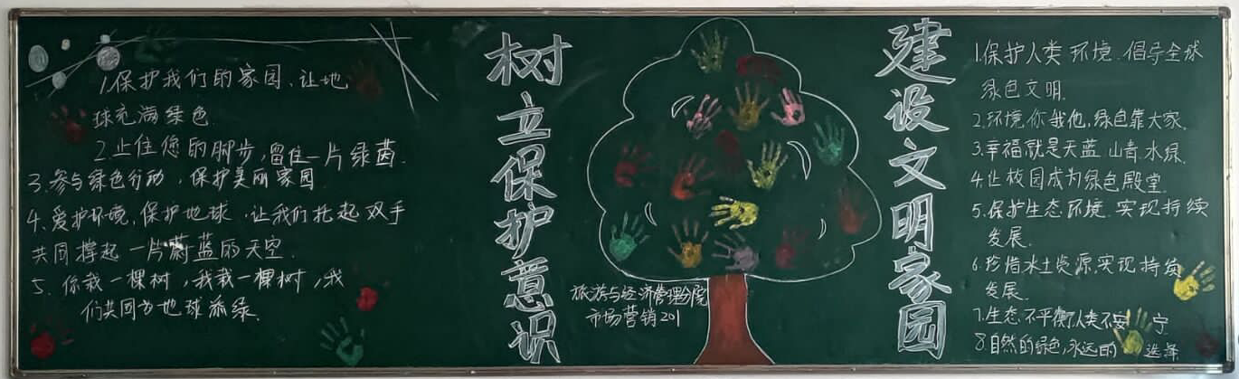 6月3日,在校40个班级共计一千七百余人,通过晚自习开展了 “人与自然和谐共生”的主题班会,并观看宣传片。各班级出了一期以环保为主题的黑板报以及手抄报。