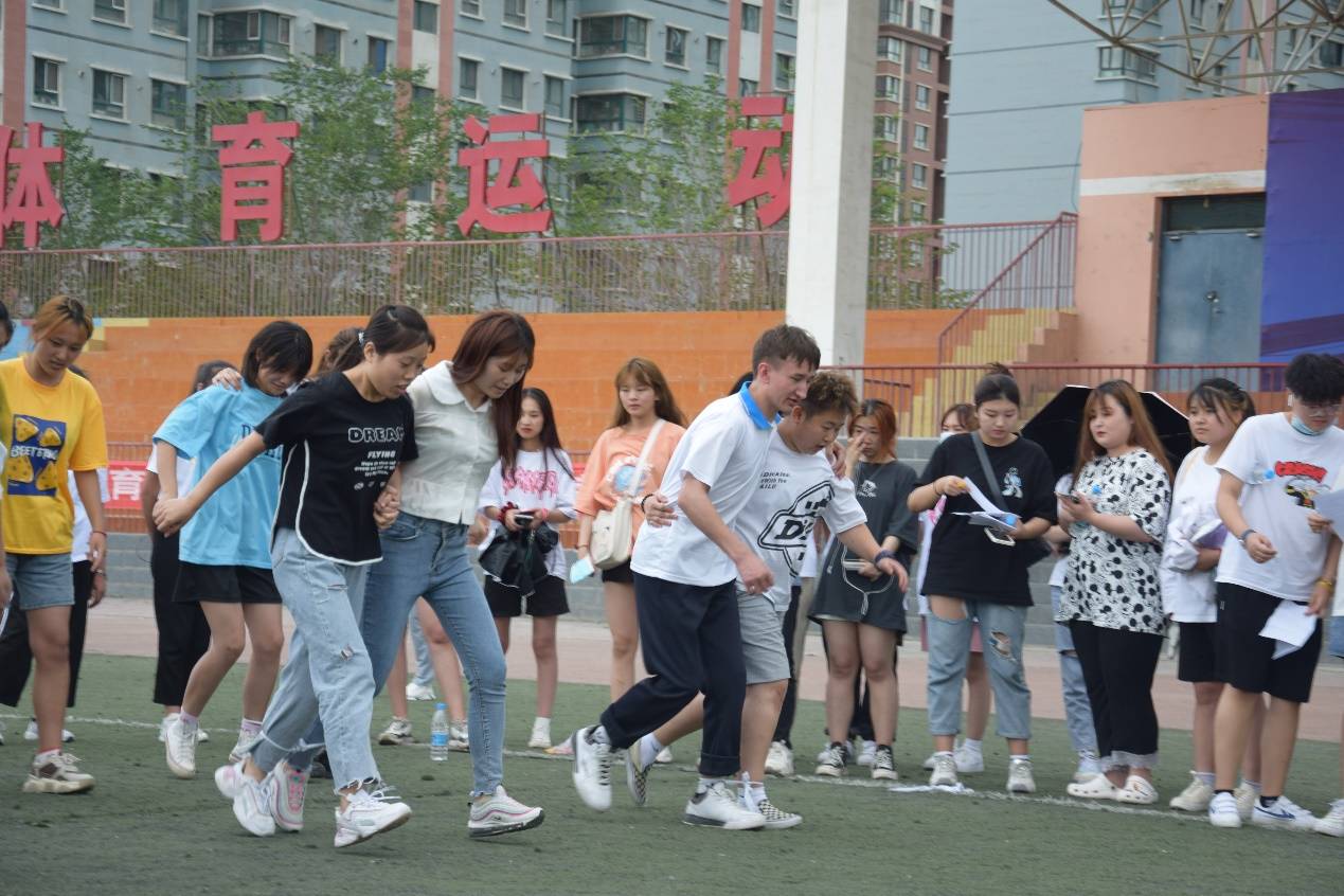 在两人三足比赛中,选手们心有灵犀,默契度较高。荣获得第一名的是会计201班,第二名是学前204班,第三名是幼管201班。操场成为欢乐的海洋,赛场上同学们奋力拼搏,场下加油声、掌声响成一片。