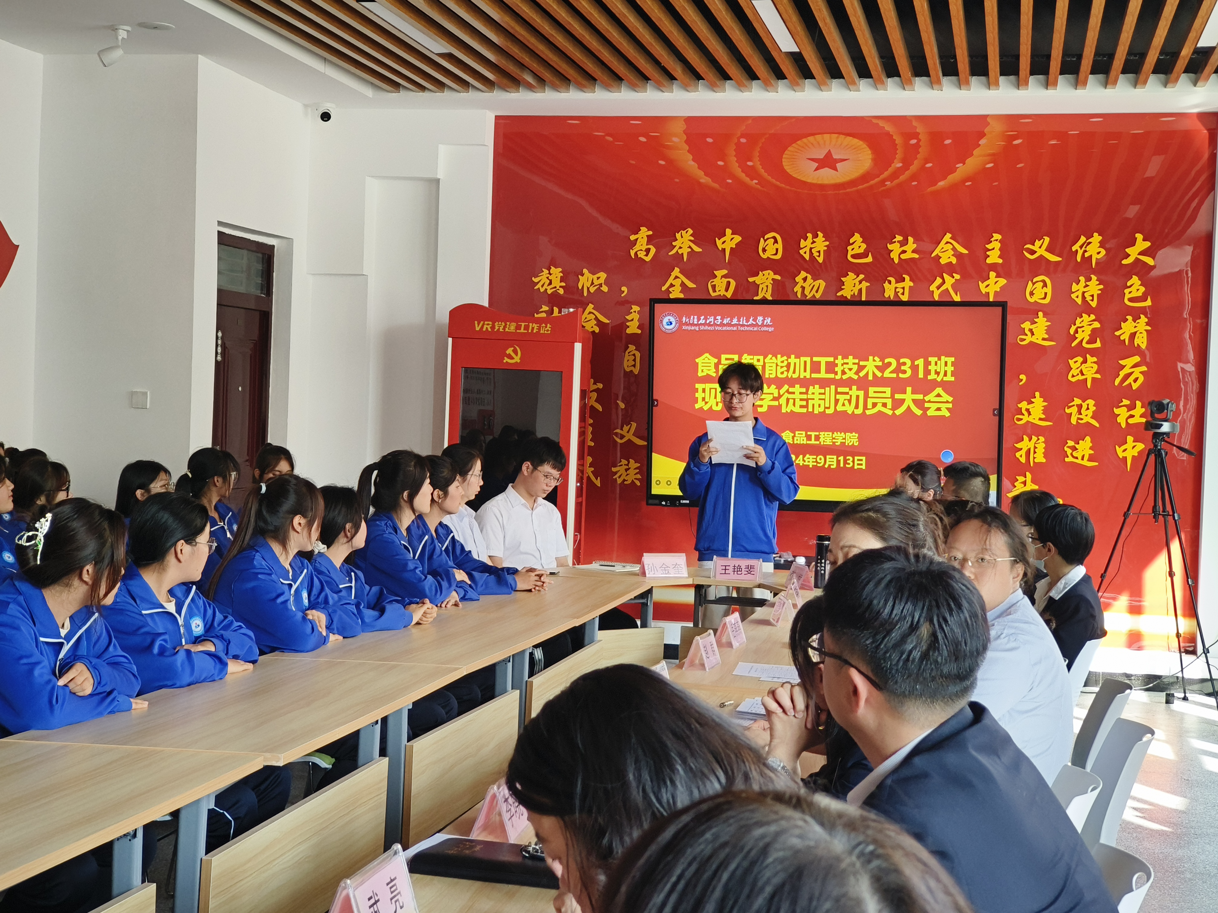 2024年9月13日下午,食品工程学院在鸿智楼B104会议室举行了2023级食品智能加工技术专业“现代学徒制”动员大会,学院党总支书记李晓华、副院长石妍、食品教研室全体教师及食品智能加工技术专业231班全体学生参会,副院长武亮主持会议。