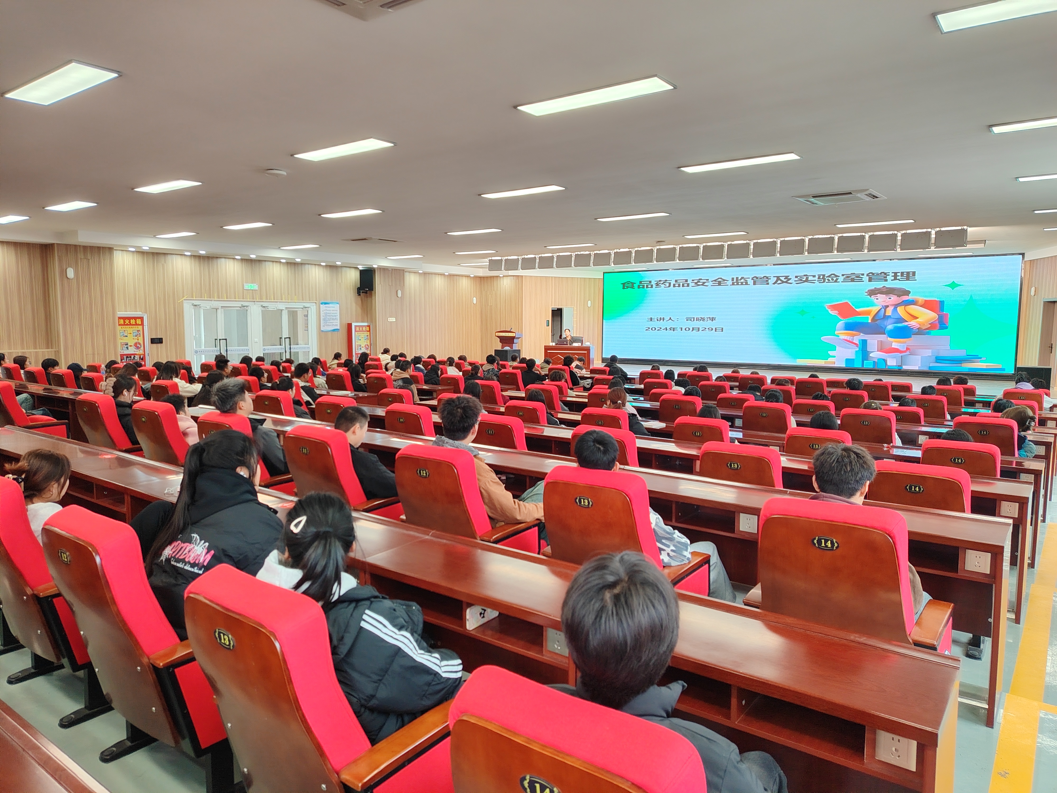 2024年10月29日,食品工程学院邀请兵团药品检验所所长司晓萍开展“大国工匠进校园”活动,为食品检验检测技术专业140余名师生带来了一场别开生面的讲座。