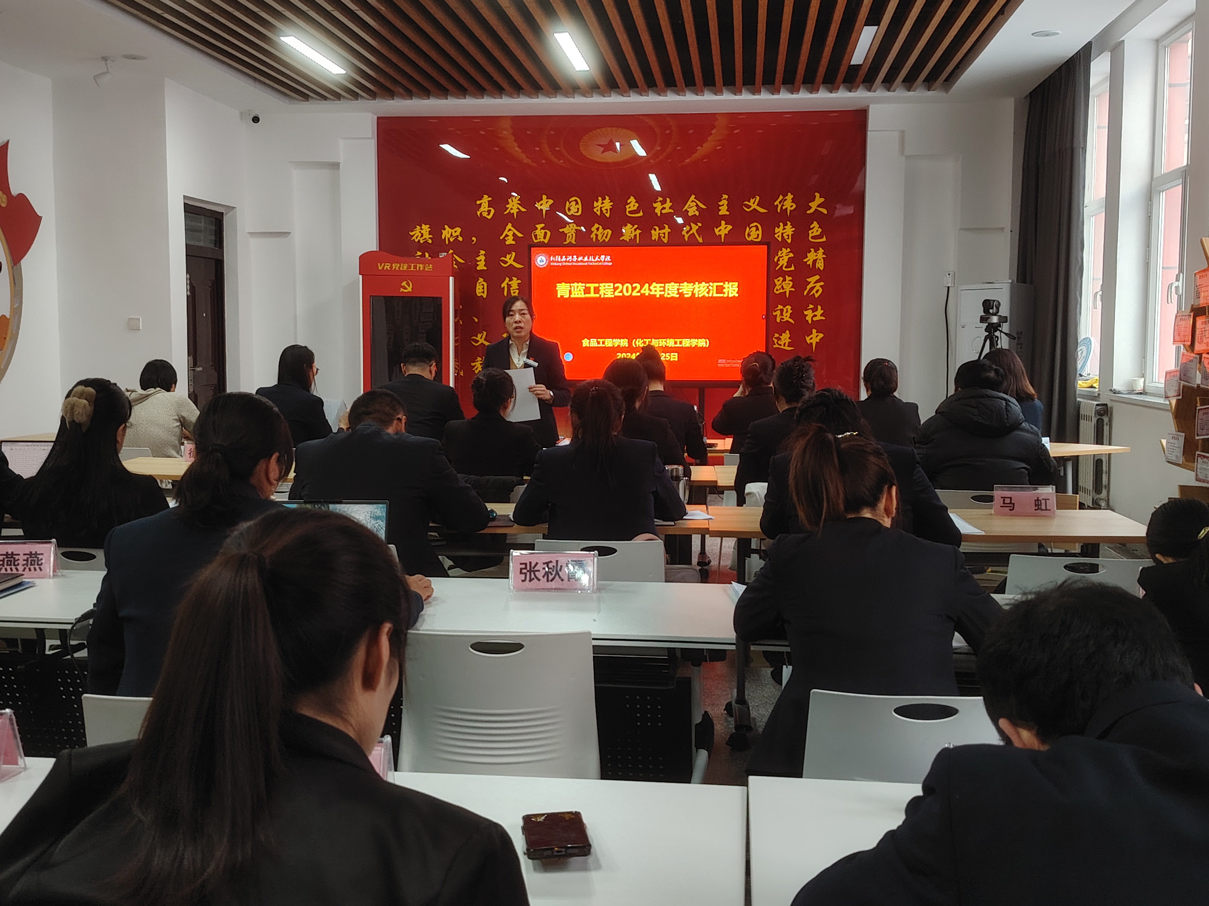 为保证“青蓝工程”顺利组织实施,严把质量关,食品工程(化工与环境工程)学院成立由学院领导、教研室主任组成的考核小组,根据学校《“青蓝工程”考核细则》要求,对青年教师进行现场考核。考核过程中,23名青年教师进行了精彩的汇报。青年教师结合自身的教育教学实践,重点围绕师德师风、专业发展、教学工作、班主任工作、存在问题及改进措施等方面进行了综合述评,分享了自己在教学过程中遇到的一些困惑与思考。这些精彩汇报记录着青年教师的点滴成长,也展示着教育的新生力量与希望。食品工程(化工与环境工程)学院党总支书记李晓华对青年教师提出殷切期望,要求青年教师常怀谦卑之心、感恩之心、超越之心,继续以优秀前辈为榜样,向下扎根、向上生长,终身学习、不断进步,成就与超越自我。