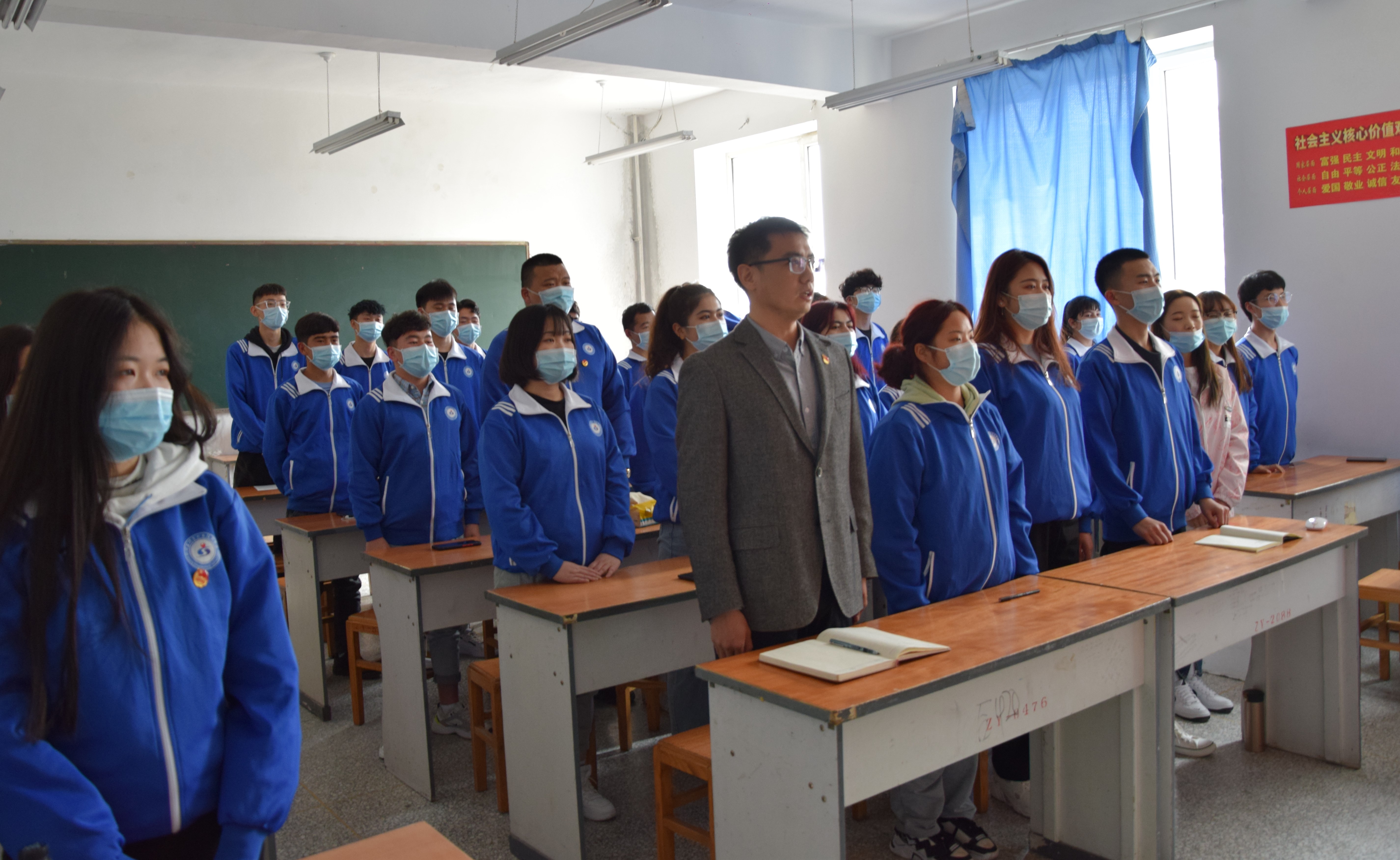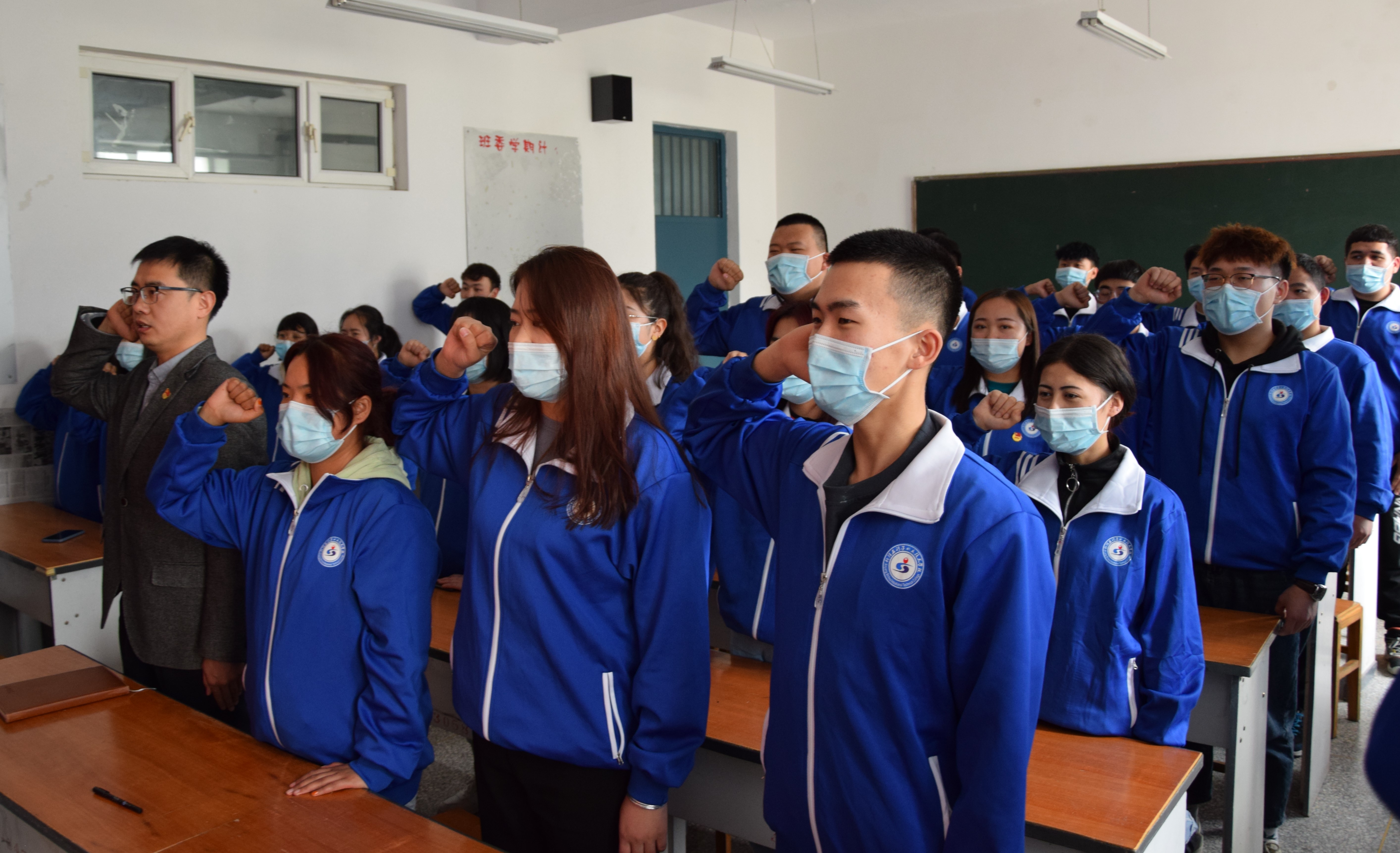 主题团日活动上,新晋团员高唱团歌拉开了团课的序幕,团课上详细学习了习主席在对于现在中国所面临的“百年未有之变局”的主题思想,团员们对于视频中的革命先烈为了祖国可以贡献一切乃至生命的英特纳雄耐尔精神肃然起敬。随后新晋三名团员代表进行了发言,最后团总支书记武亮老师表示:“共青团作为党的助手和后备军,需发扬“党有号召,团有行动”的优良传统,坚持党的领导毫不动摇。”团课的最后,全体团员们站在庄严的党旗下面齐声庄严宣誓了入团誓词。