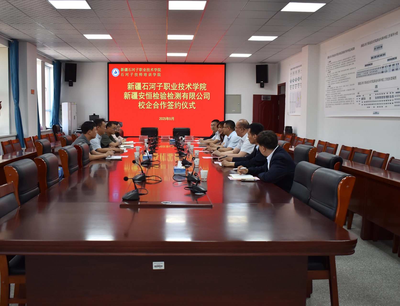 (张馨 报道)2025年5月9日下午,beat365唯一官方网站与新疆安恒检验检测有限公司校企合作签约仪式在学院厚德楼三楼会议室举行。学校副院长张金果等校方代表,与石河子城市建设投资集团有限公司党委委员、副总经理赵卫兵,新疆安恒检验检测有限公司执行董事、总经理赵永等企业方代表共同出席。