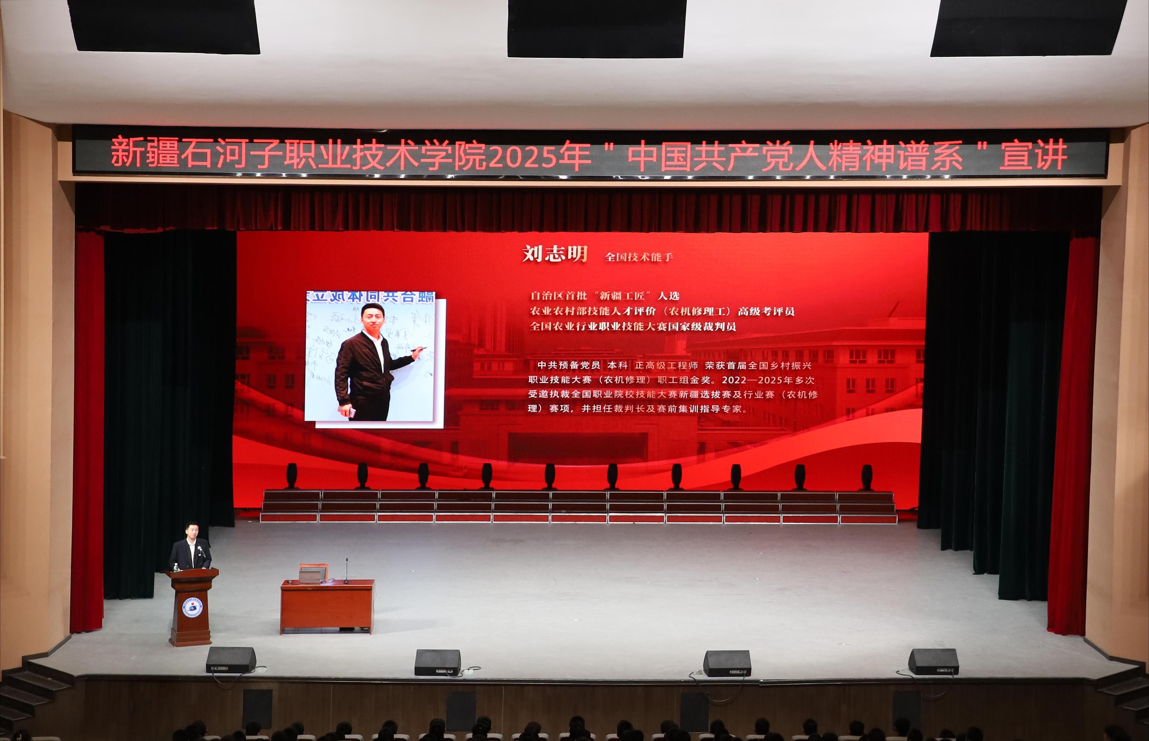 为深入学习贯彻党的二十届四中全会精神,落实全国高校“立报国强国大志向 做挺膺担当奋斗者”宣传教育要求,传承兵团红色基因,培育师生“扎根兵团、服务边疆”的职业情怀。2025年12月4日下午,beat365唯一官方网站“中国共产党人精神谱系”校内宣讲活动在学术报告厅开讲。学校党委书记史文革,党委副书记、院长林炯,副院长马彩梅及相关部门负责人、二级学院领导,1000余名师生代表齐聚一堂,共同接受这场精神的洗礼与思想的淬炼。