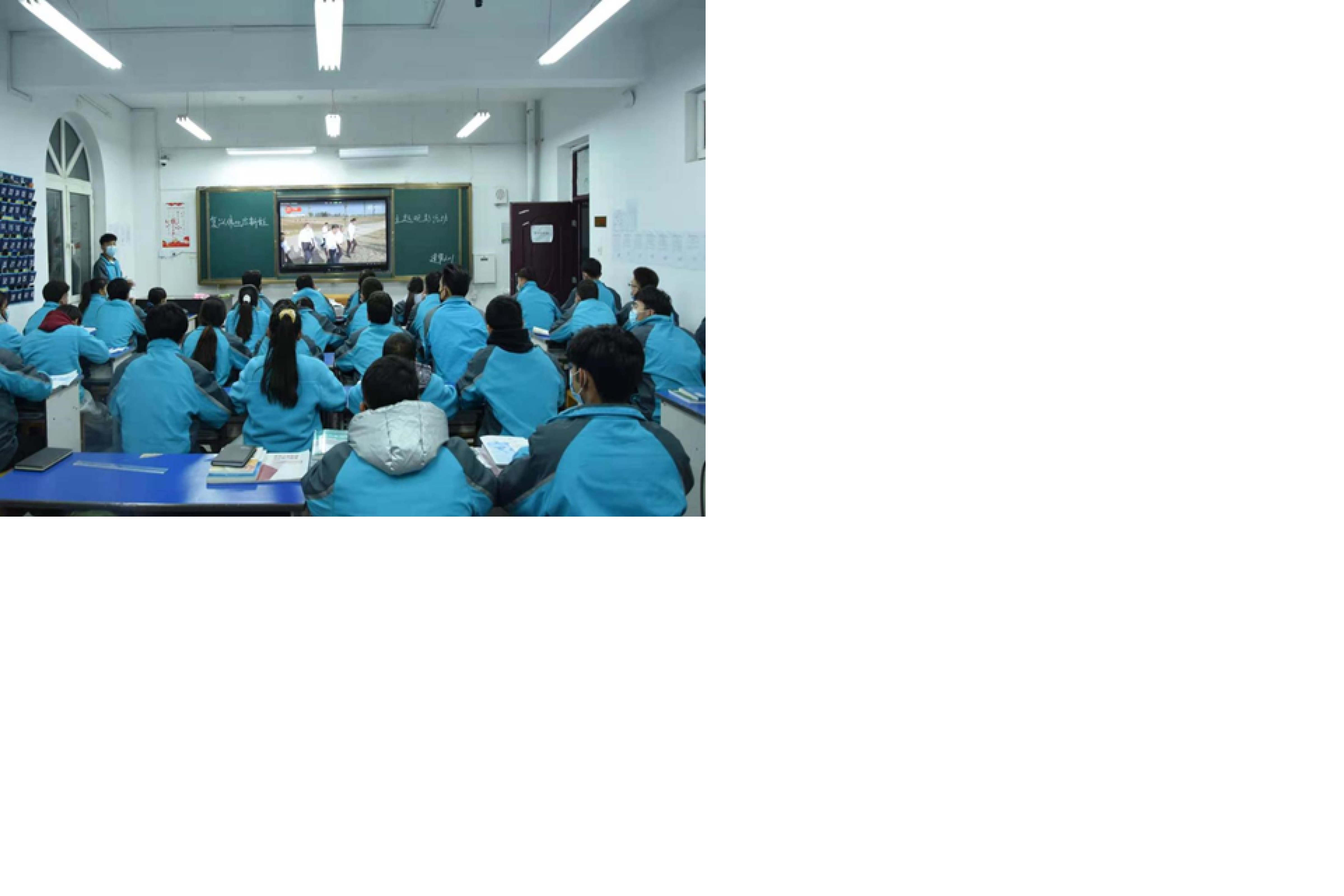 2020年11月23日星期一水建分院师生利用晚自习的时间集体观看;《复兴伟业启征程—一份历史性纲领的诞生》电视议政片,并持续深入学习十九届五中全会精神。