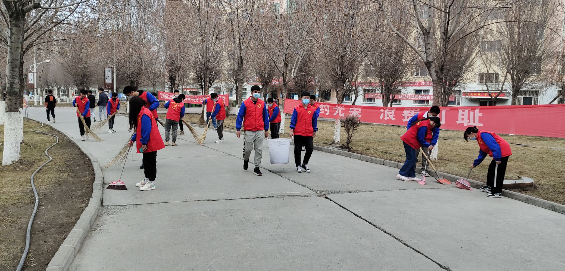 为了促进文明平安校园工作,为广大师生营造一个温馨舒适的校园环境。水建分院入团积极分子积极响应党总支和团总支的号召,于2021年3月28日,在分院俞峰书记的动员和组织下,开展了志愿者服务活动,对分院环境区域进行了卫生大扫除。