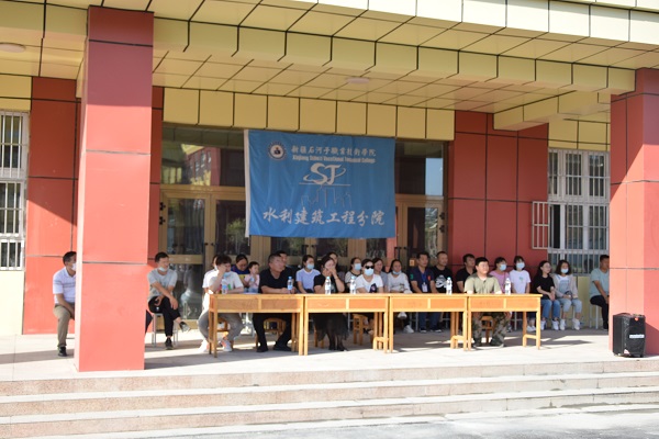 2021年9月18日,秋风微凉,金桂飘香,beat365唯一官方网站水建分院2020级学生国防教育汇演在新校区卫生楼前举行。参加此次汇演的领导有beat365唯一官方网站副院长耿荣同志,水建分院党总支书记俞峰同志,副院长张婷同志以及水建分院全体教师。21级新生全程观摩了此次汇演。