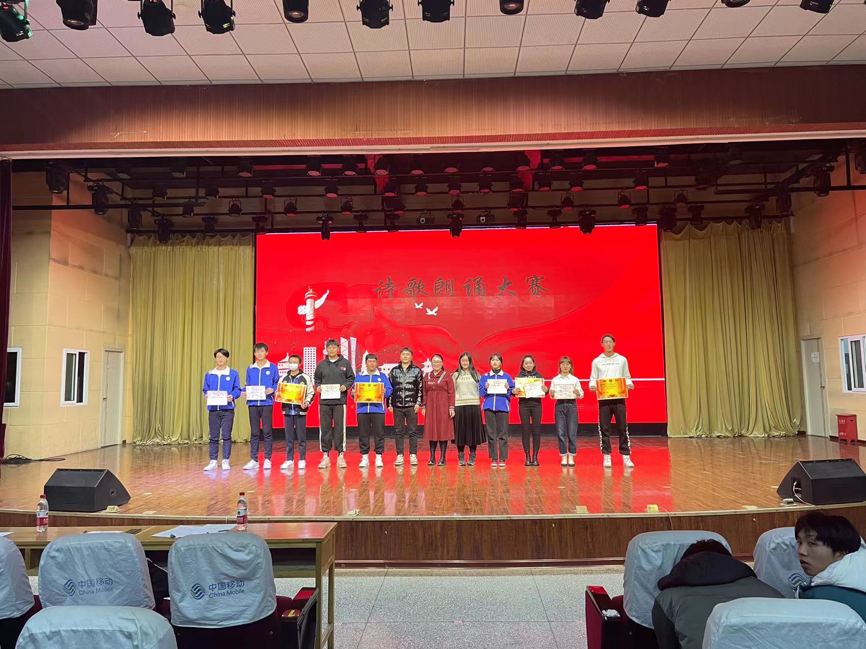 比赛现场,选手们以铿锵有力的气势,充沛饱满的感情,自信大方的形象赢得老师和同学们的阵阵掌声。比赛内容和形式更是丰富多彩,有的朗读千古传颂的名篇,让我们在精简的语言当中解读古人的英伟事迹;有的表达思乡之情,轻悠的配乐中,吟诵者带领着我们走进诗人的心田,去领悟诗人心中的感情;有的歌颂青春,引导同学们追求青春,勇敢拼搏……