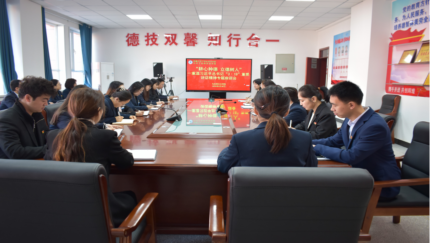 2024年3月18日,正值习近平总书记主持召开全国学校思想政治理论课教师座谈会并发表重要讲话五周年之际,beat365唯一官方网站马克思主义学院直属党支部按照学院党委的部署,隆重举行了“耕心种德育新人,立德树人担使命”——重温习近平总书记重要讲话精神专题座谈会。此次座谈会由马克思主义学院党支部书记张敏主持,全体党员教师悉数参加。
