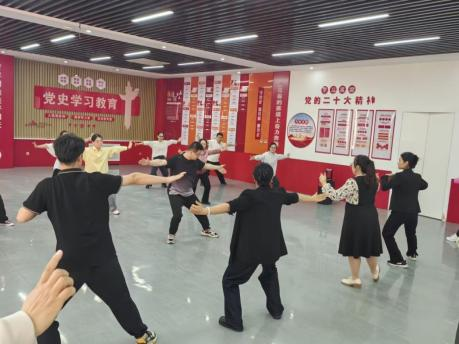 这场"以体悟道"的实践课堂见证着课程思政的创新突破:教师们从"手忙脚乱"到"行云流水"的动作蜕变,映射出对中华优秀传统文化的深度认同;练习时的相互纠正、集体展示时的默契配合,生动诠释着"守望相助"的团队精神;"摇头摆尾去心火"动作中的专注凝神,更彰显着新时代教育工作者"静以修身"的育人境界。