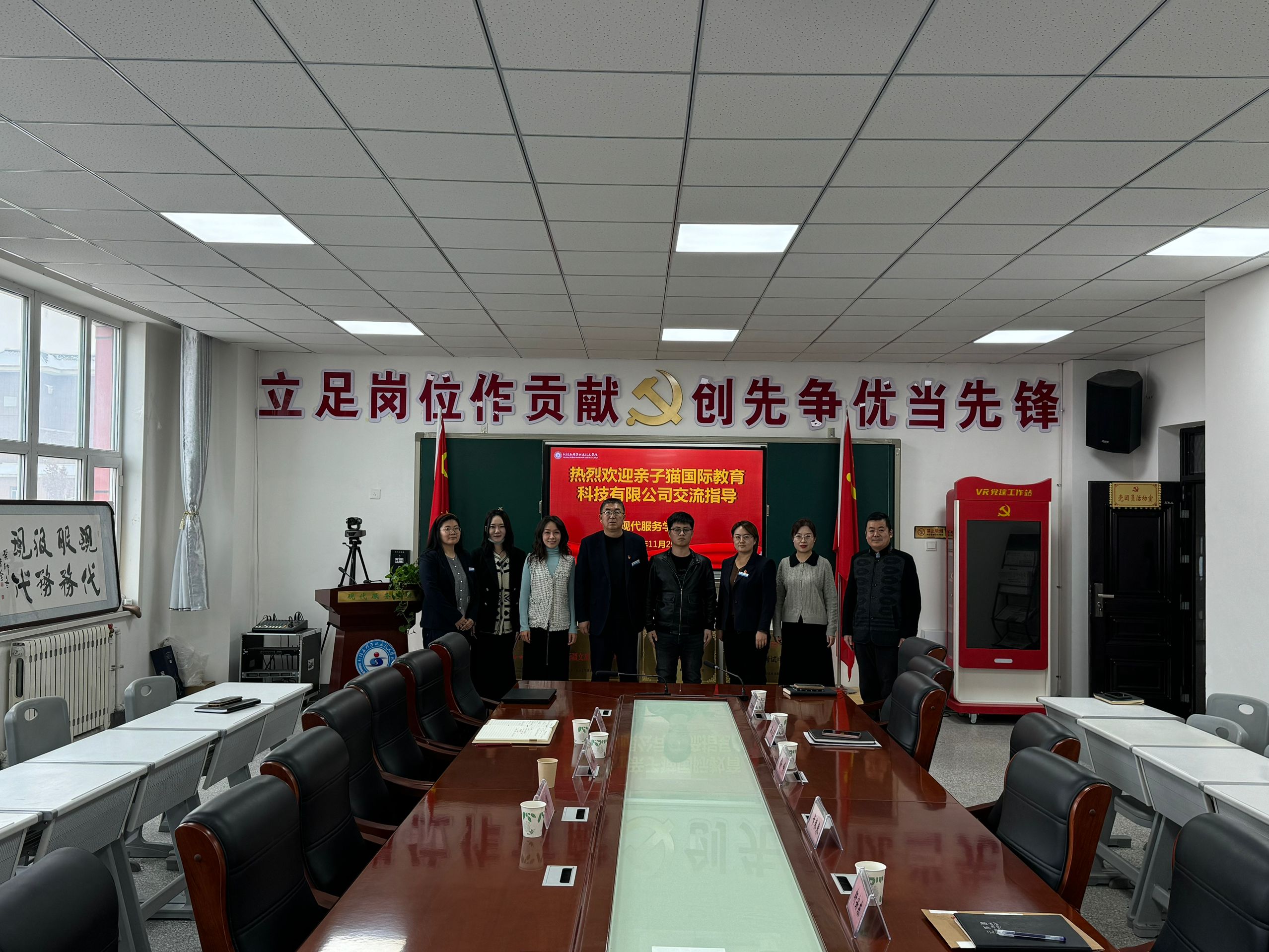 (张文慧 报道)2024年11月25日,亲子猫国际教育科技有限公司代表莅临现代服务学院,双方就研学专业与行业发展进行交流研讨。