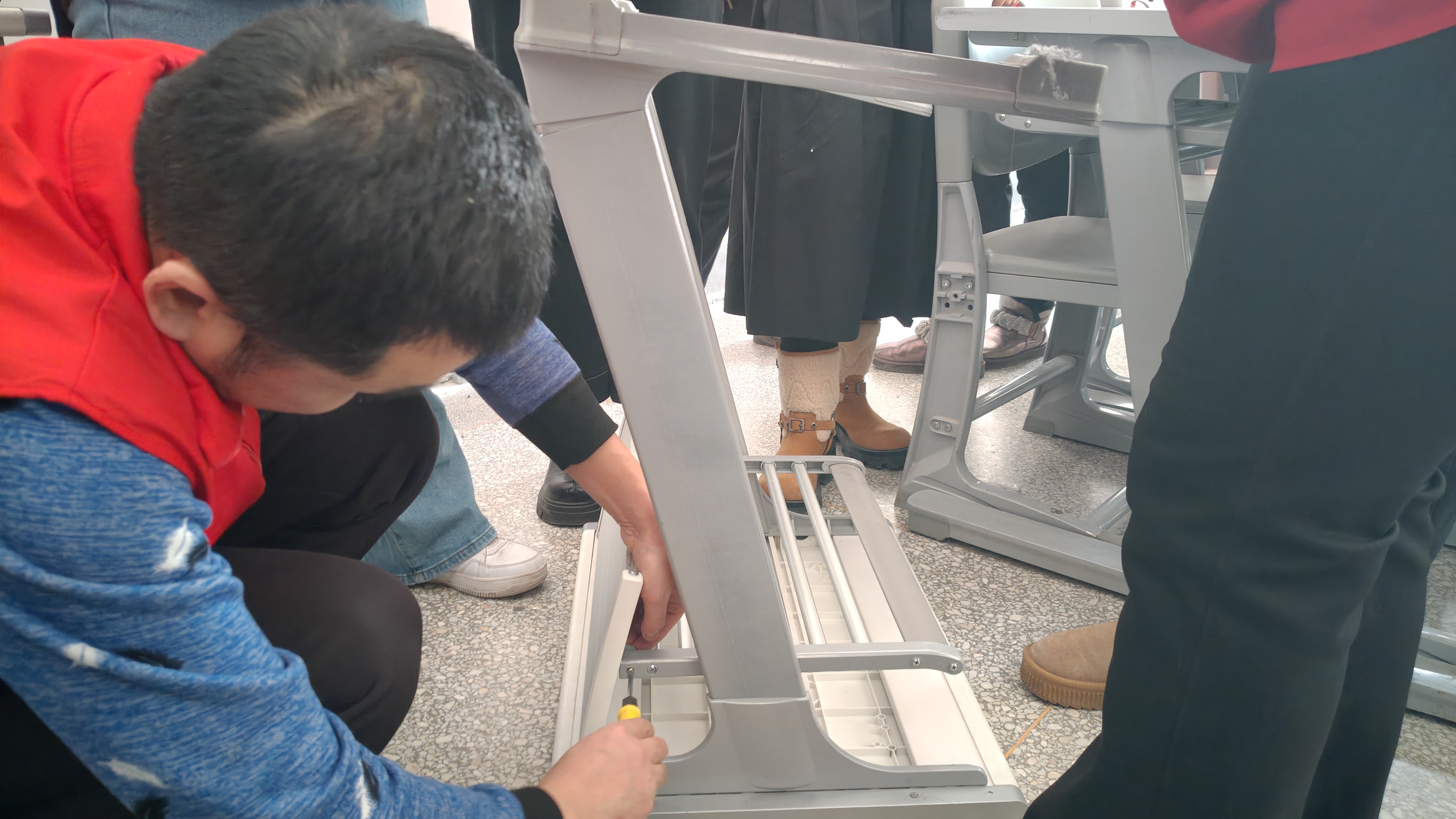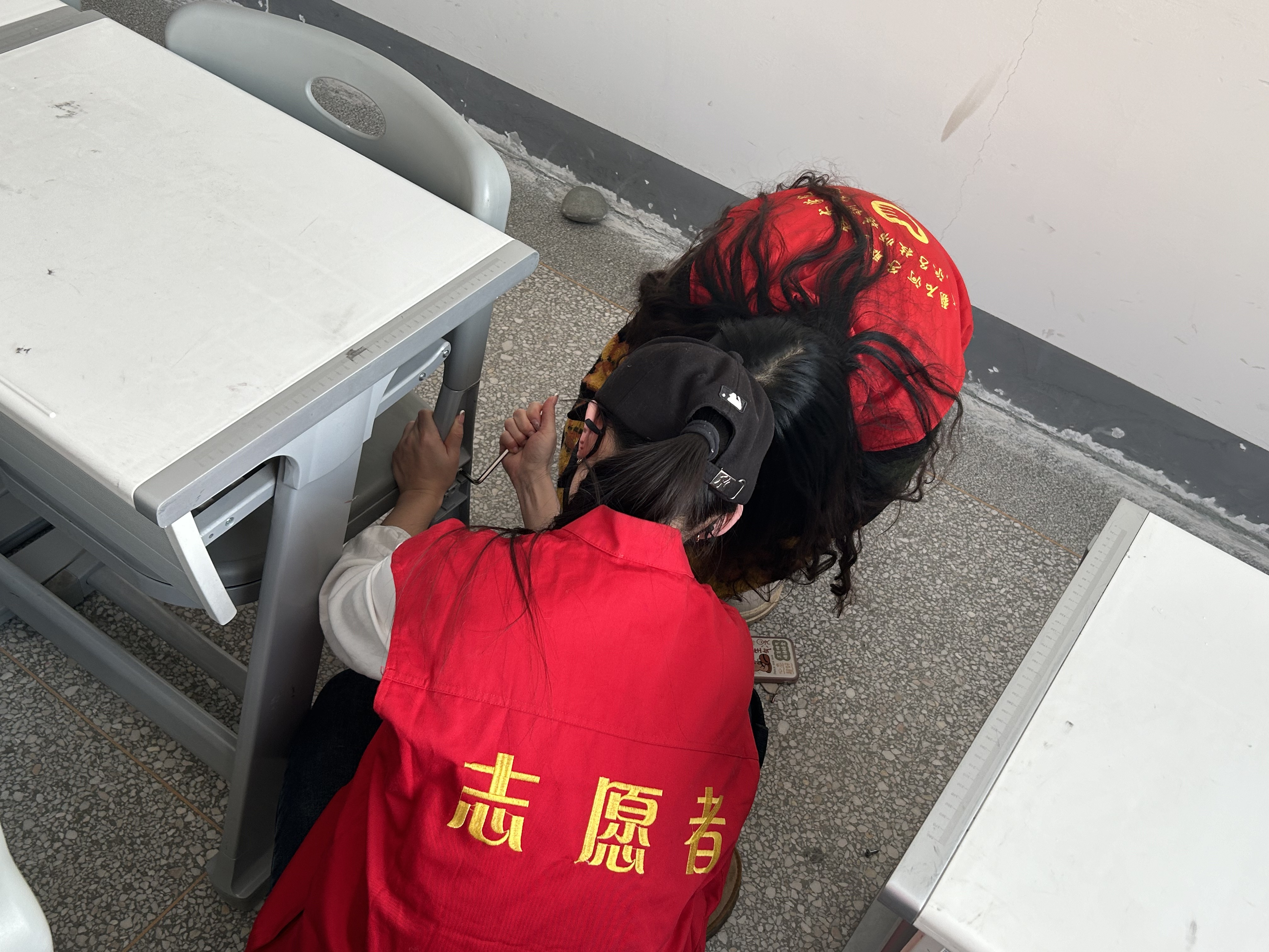 在党支部书记俞峰的带领下,学院全体教师积极响应,与留校志愿者一起参与了此次活动。他们携带各种维修工具,对教学楼内教室和公共区域的桌椅进行了全面检查和维修。在维修过程中,教师们认真细致地检查每一处损坏,无论是松动的螺丝、开裂的桌面还是不稳定的椅子,都一一进行了修复或加固处理。通过他们的努力,许多桌椅焕然一新,极大地改善了校园的硬件设施。