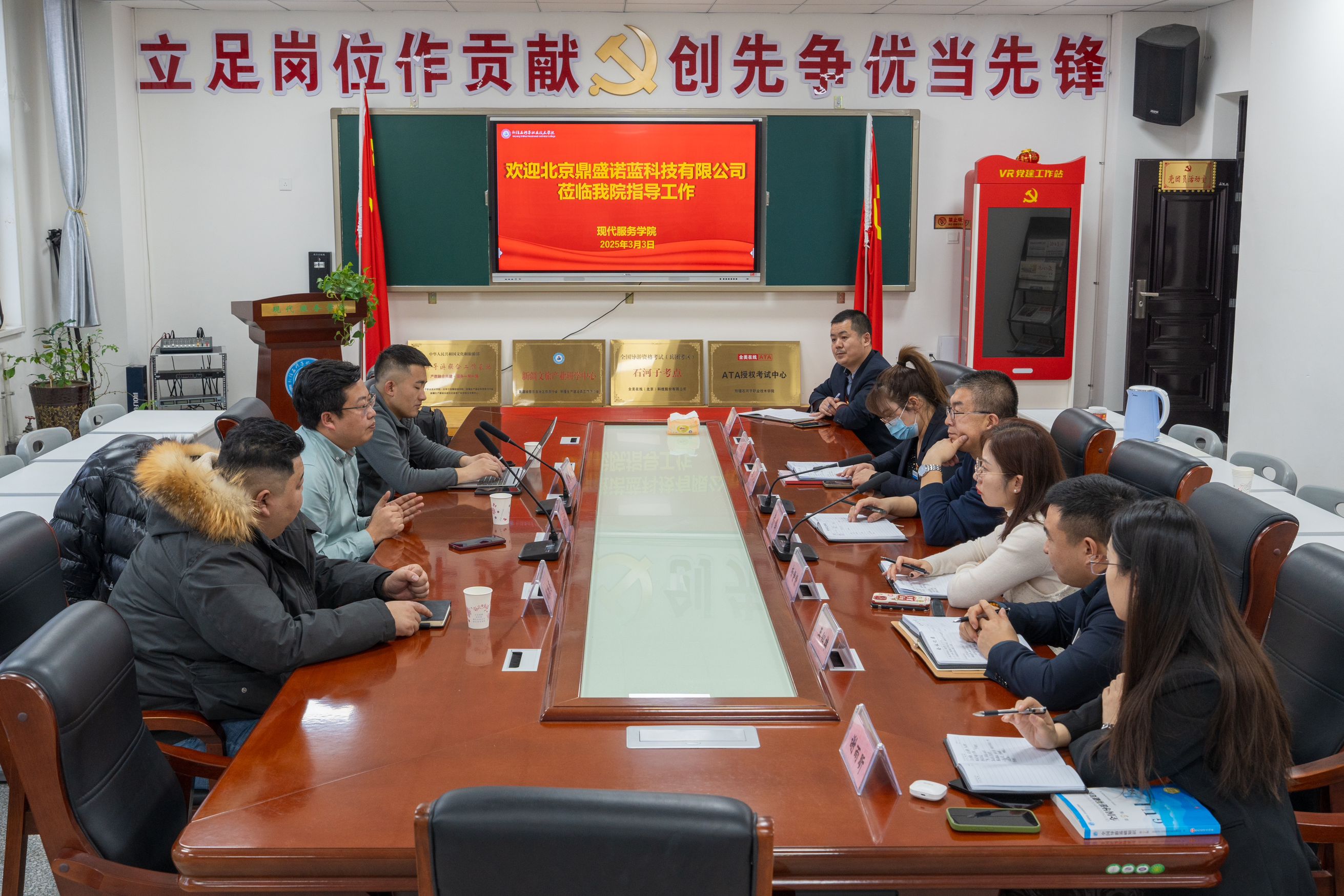(谢雨昕 报道)2025年3月3日,北京鼎盛诺蓝科技有限公司总监安胜敏一行到访现代服务学院,学院党支部书记俞峰、院长蒋小玉带领相关教师参加座谈。