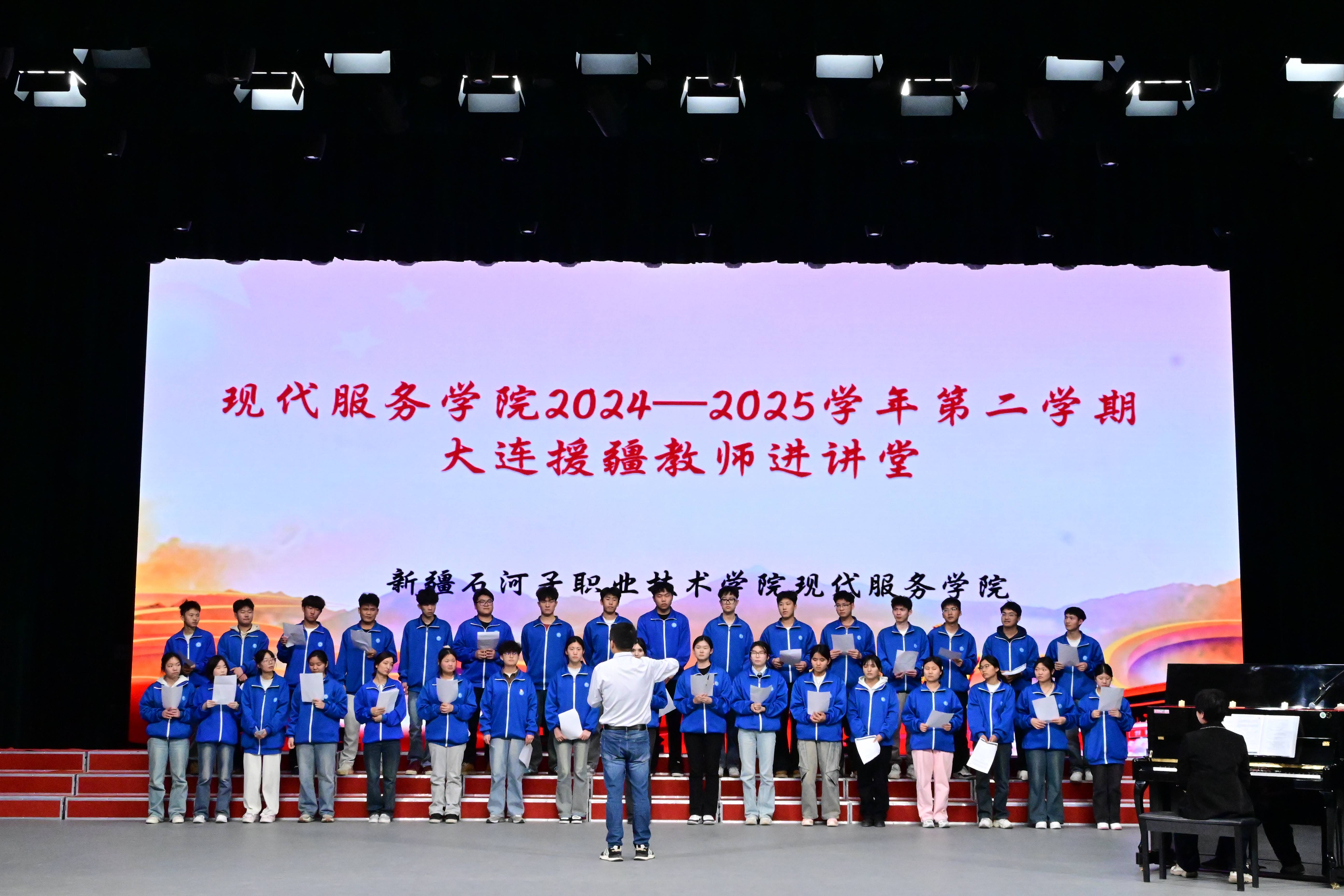 (卡米来 报道)2025年3月26日,一场别开生面的第二课堂在现代服务学院展开,大连职业技术学院的援疆教师周东恩与现代服务学院的李金霞老师携手,共同为学生们带来了一堂精彩纷呈的声乐课。