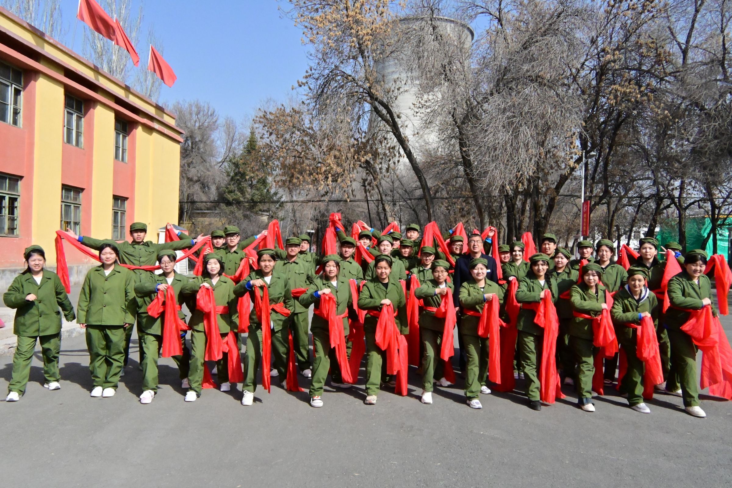 活动在戈壁印象 “红色大讲堂” 拉开帷幕,现场庄严肃穆。学院副院长杨静静满怀敬意地说道,让我们一起为新疆屯垦戍边事业献出青春乃至生命的军垦英烈们,致以最深切的缅怀!副书记黎丽主讲《清明追思与兵团精神的新时代价值》主题团课,她以爱国英雄的故事切入,诠释兵团精神内核,号召学生将红色基因融入现代服务业领域。活动中,师生换上粗布军垦服,齐声朗读艾青《年轻的城》感受到了青春与历史共振,信仰在诗行中淬火。在保留完好的纺织车间,师生操作老式纺织车,复原“白天开荒、夜晚纺纱”场景。旅游管理专业教师谢雨昕现场讲解,这台1959年投产的纺织机,曾织出兵团第一匹棉布,见证戈壁变绿洲的奇迹。学生赵阳感慨道,粗布摩擦皮肤的触感,让我真切体会到‘艰苦奋斗’四个字的分量。