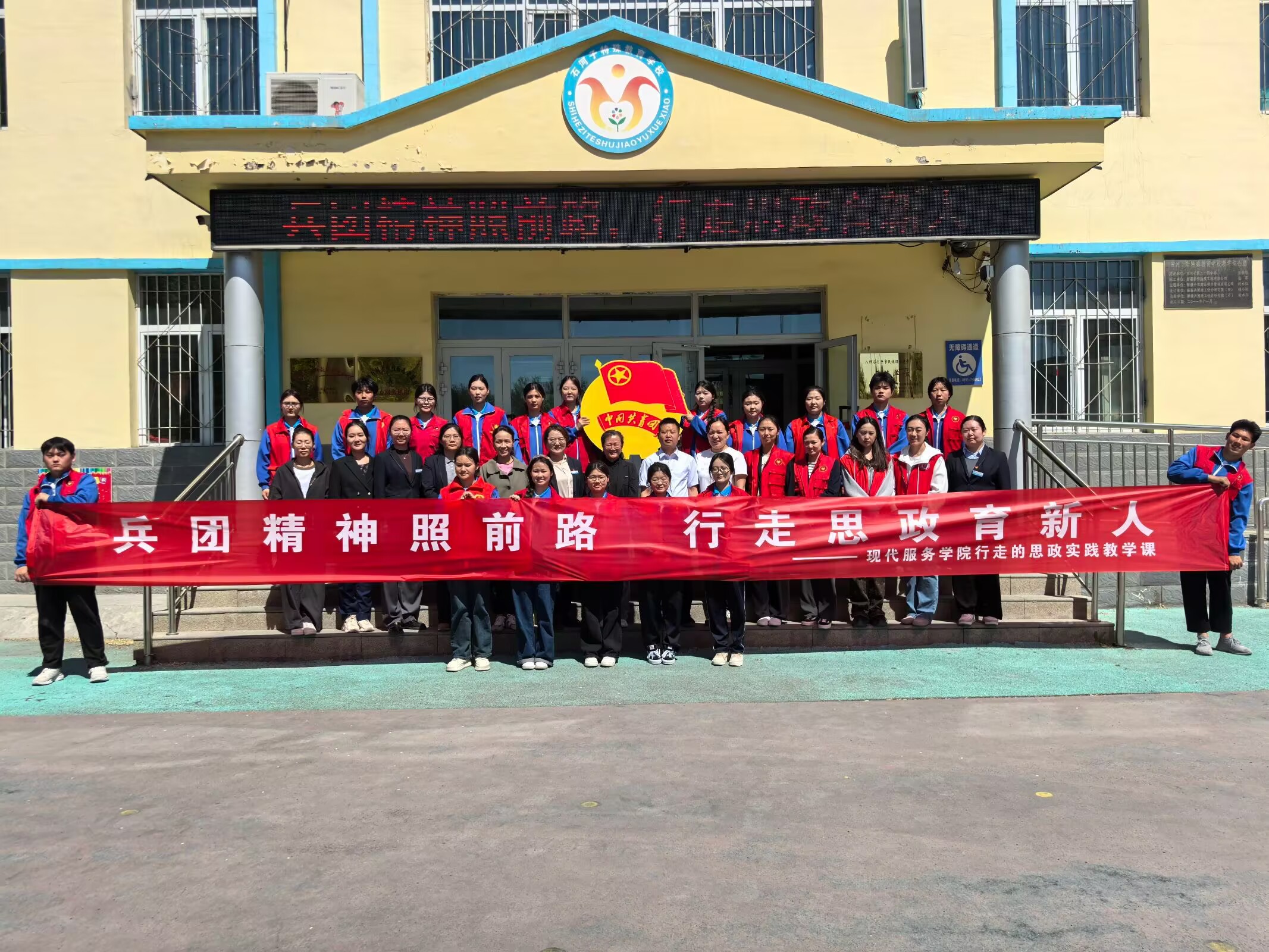 (苗梦雪 报道)2025年4月26日,现代服务学院院长蒋小玉、副院长卡米来带领护理、学前教育专业师生走进石河子特殊教育学校,开展了一场别开生面的“行走的思政课”活动。通过趣味运动会、健康知识宣讲、手工互动等形式,师生们为特殊儿童送去温暖与关爱,传递知识与欢乐。