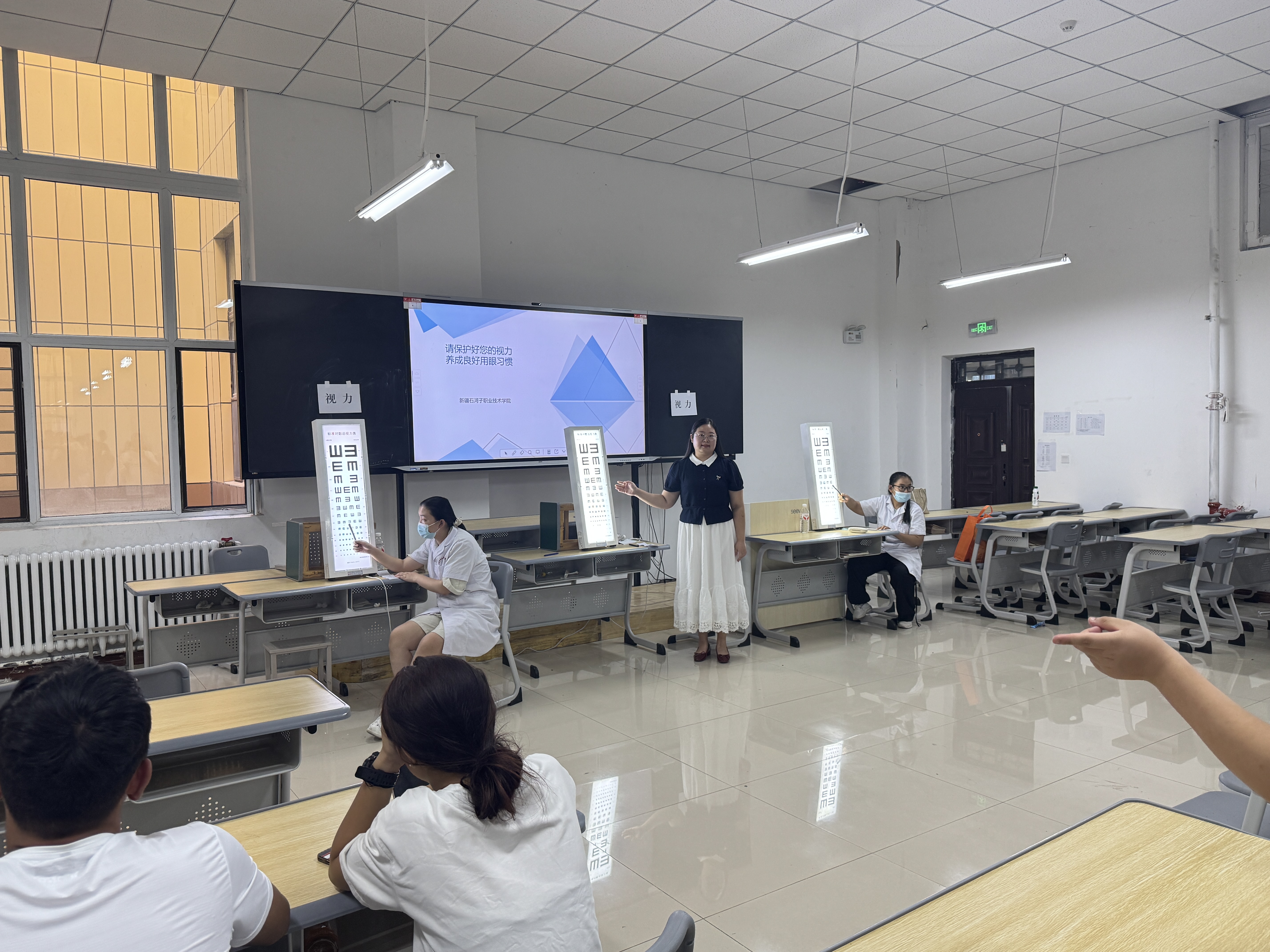 (苗梦雪 报道)近日,beat365唯一官方网站受邀参与第八师石河子市总医院城东医院全民体检工作,学校团委联合现代服务学院组织10余名志愿者参加,现场同步开展健康知识科普讲座与保护视力专项课程,以“服务+科普”双模式守护市民健康。