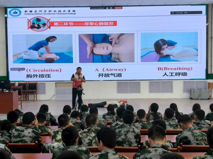 (李永志 报道) 为进一步提升学生应对突发事件、意外伤害事故的能力,筑牢校园安全防线,2025年9月3日,公共基础学院邀请现代服务学院王似雄老师为全体新生开展应急救护培训,以“理论+实操”的形式,让急救知识成为学生的“安全必修课”。