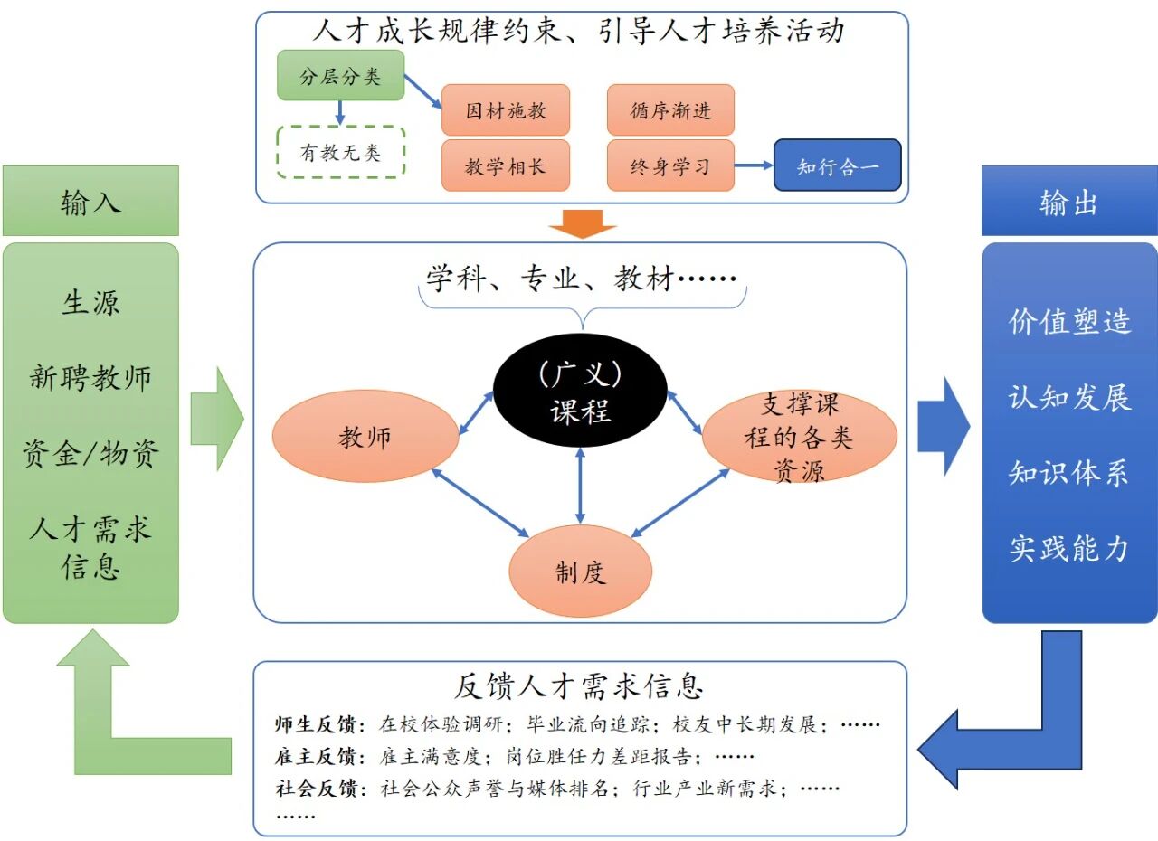 广义的课程将人才培养视为一个以学生经验获得为中心的生态系统。以下八个方面并非线性关系,而是一个相互关联、相互反馈的循环体系。