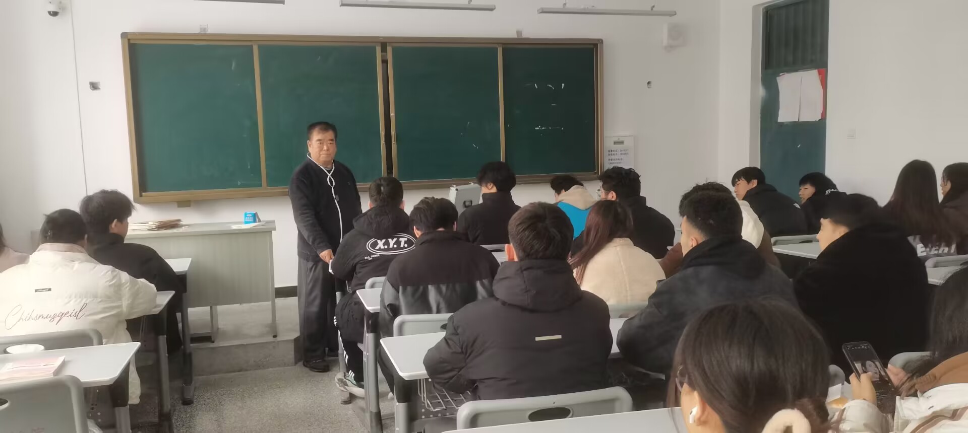 在本次活动中,具有丰富临床经验的校医务室医护人员深入学生宿舍、班级开展知识宣传、坐诊和随访服务,延伸服务育人触角,筑牢学生健康防线。活动前期,医护人员带着专业的医疗设备,与学生管理教师交流了解学生们的生活习惯、常见病宣传教育情况。在教室里,医护人员为学生开展健康讲座与问诊测量,医护人员用通俗易懂的语言和图文并茂的案例,向学生们详细讲解了冬季多发疾病的基础医学知识,涵盖发病机制、传播途径、临床表现等内容。特别针对流行病的传播途径与可防可控方法进行了详细阐述,让师生们充分认识到及时预防与科学治疗对切断病原传播链条的重要性;医护人员通过问诊、常规测量等方式对学生进行健康监测,耐心地向学生普及包括日常饮食、运动锻炼、疾病预防等方面的注意事项,针对不同体质的学生,给出了专业的健康建议,引导学生们树立正确的健康观念,培养良好的生活习惯。