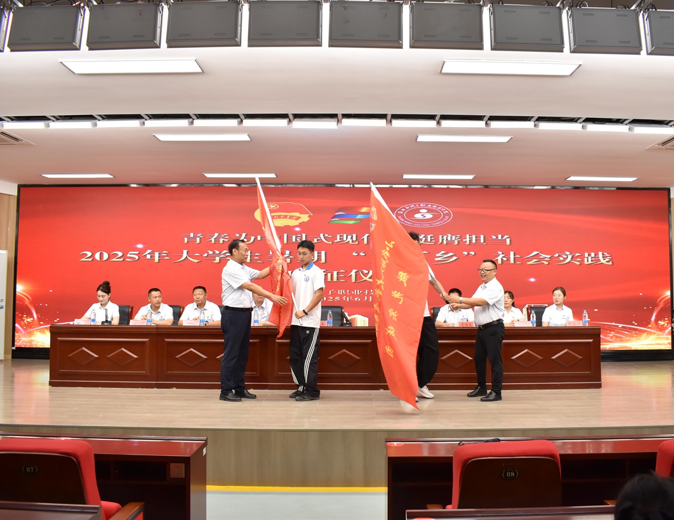 仪式在庄严的国歌声中拉开帷幕,与会人员整装肃立,齐声奏唱国歌,表达对祖国的热爱之情。团委负责人黎丽介绍暑期“三下乡”社会实践活动基本情况及工作安排。实践团学生代表邓杰文在发言中表示,将怀揣“奉献服务”的初心投身社会实践,在实践中锻炼自我、增长才干,为乡村振兴贡献青春力量。