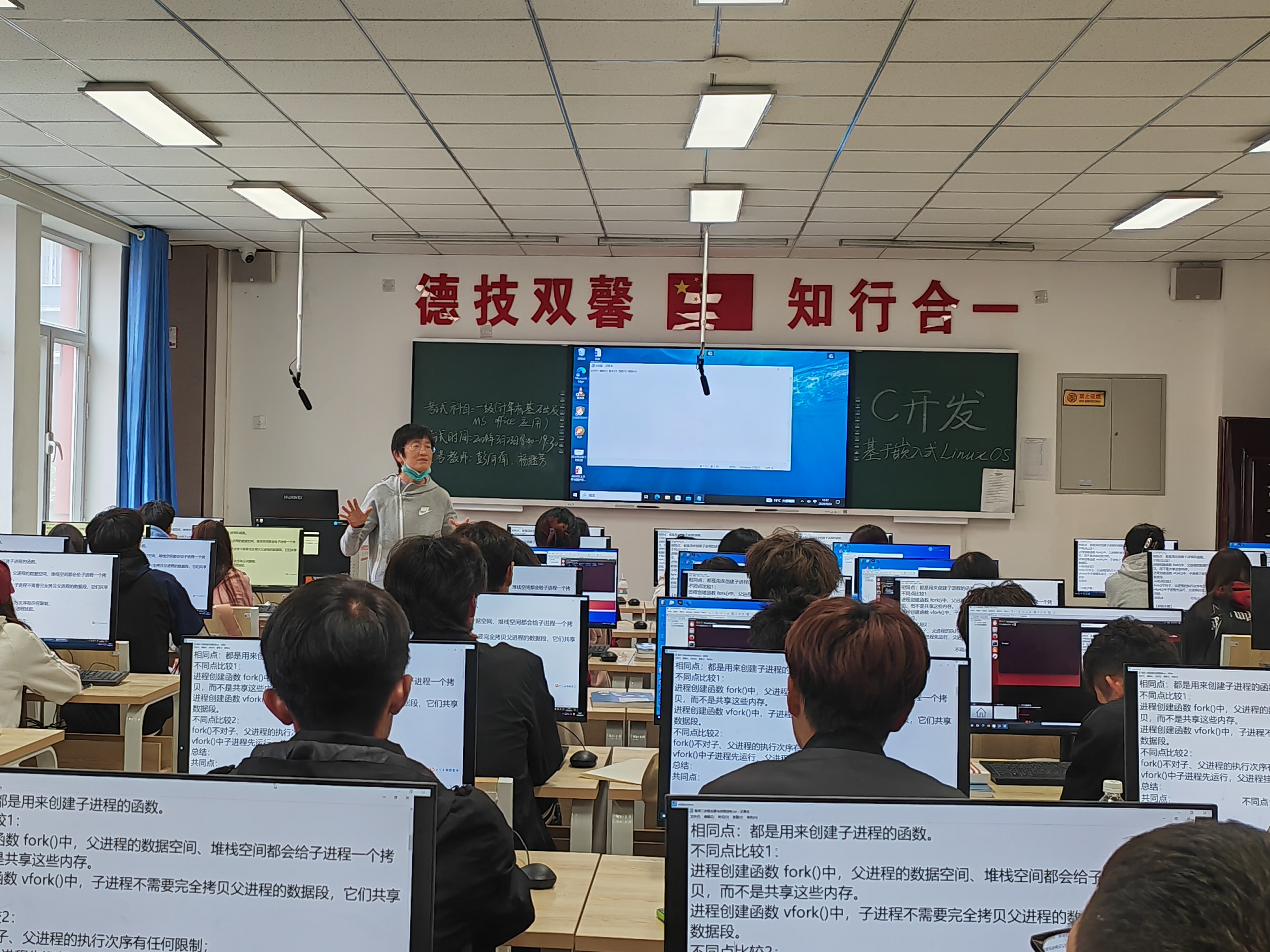 刘剑英老师以C语言的编程与应用为基础,以丰富的教学经验和深厚的专业素养,深入剖析了嵌入式系统的实际运用,运用生动的案例与严谨的逻辑,引领着在场师生共同探索编程语言的深邃世界,激发了教师对教育教学方法的深刻反思与创新思考,教师们认真聆听课程内容,就专业理论知识和行业实际与刘老师展开交流探讨。