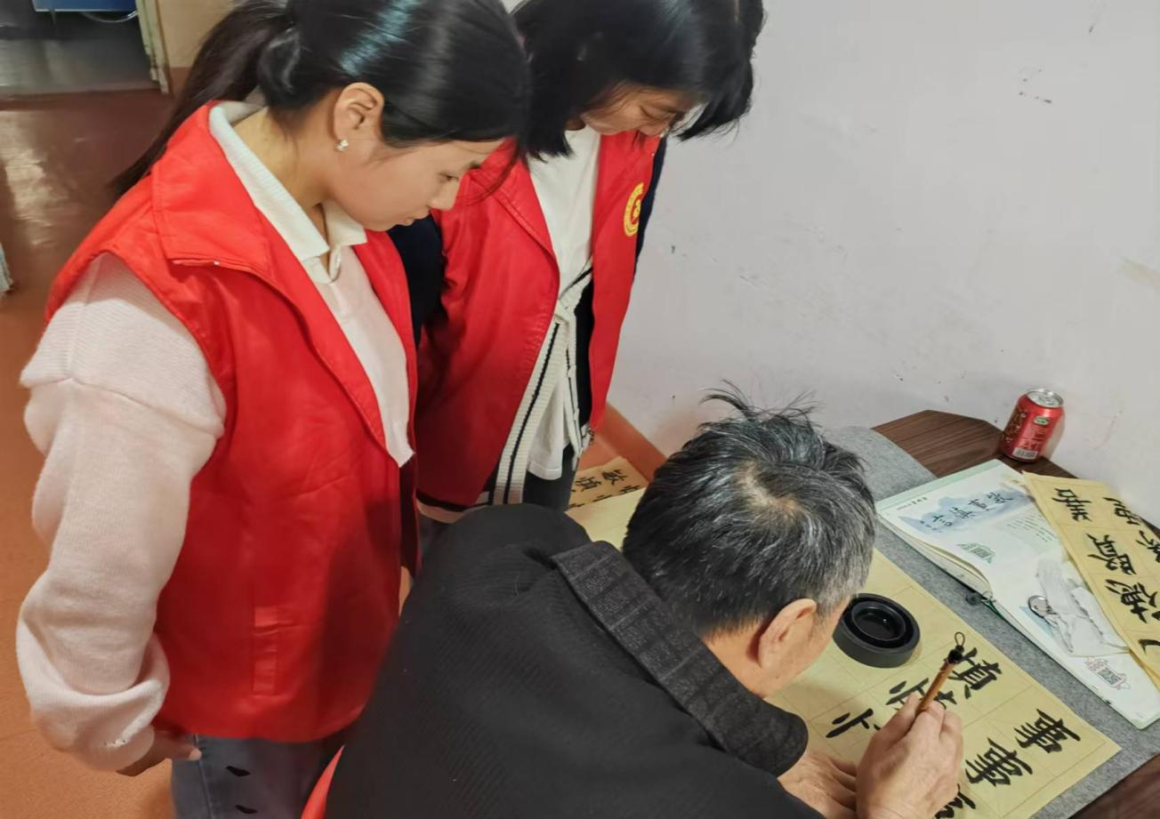 活动现场气氛温馨和谐,志愿者们为老人们精心准备了电影放映活动,在观影过程中,志愿者们细致热心地为老人们讲解电影情节,耐心回答老人们的问题。观影结束后,志愿者询问了老人们的身体状况和生活需求,并为老人们提供生活服务。志愿者们坐在老人身边,认真倾听老人讲述过去的故事,从老人年轻时建设家乡的奋斗历程到生活中的点滴趣事,志愿者们从老人们的讲述中,进一步感悟到老一辈军垦人艰苦奋斗、无私奉献的精神。在养老院的房间里,志愿者们陪着老人练习书法,老人们挥毫泼墨,展现出深厚的功底,志愿者们则在一旁欣赏、赞叹,向老人请教书法技巧。志愿者们在服务中认真负责的态度和良好的表现得到了老人们和工作人员的广泛好评。
