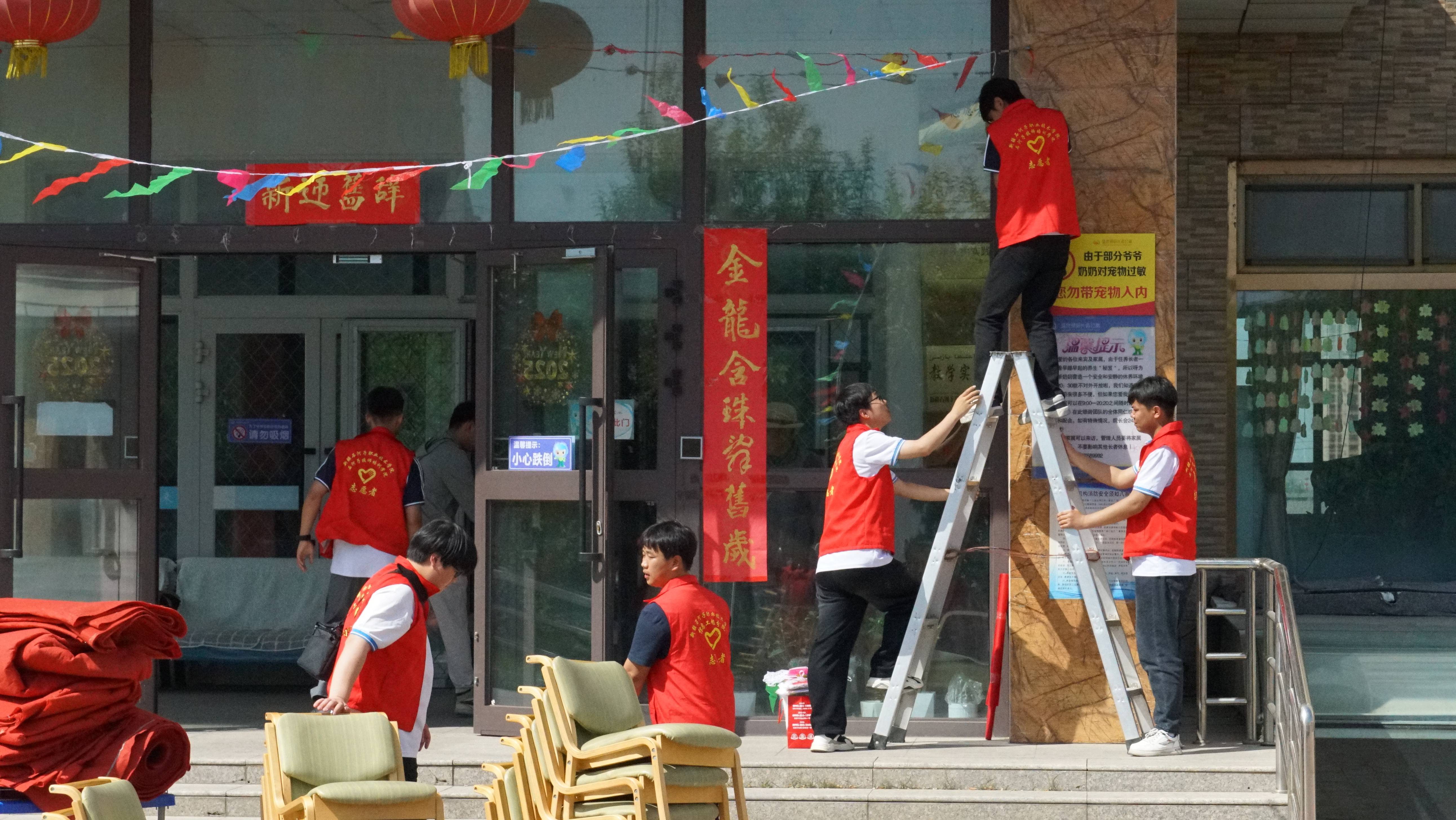 志愿服务团成员精心布置趣味运动会场地,陪伴老人共同开展体育活动,在互动中亲切交谈,并协助工作人员照料晒太阳的老人,以实际行动践行志愿精神。数媒教研室两位教师结合现场场景,为学生讲解活动影像拍摄规范与技巧,将专业实践深度融入志愿服务。师生们温馨的现场布置和细致的服务,获得养老院工作人员的高度认可。