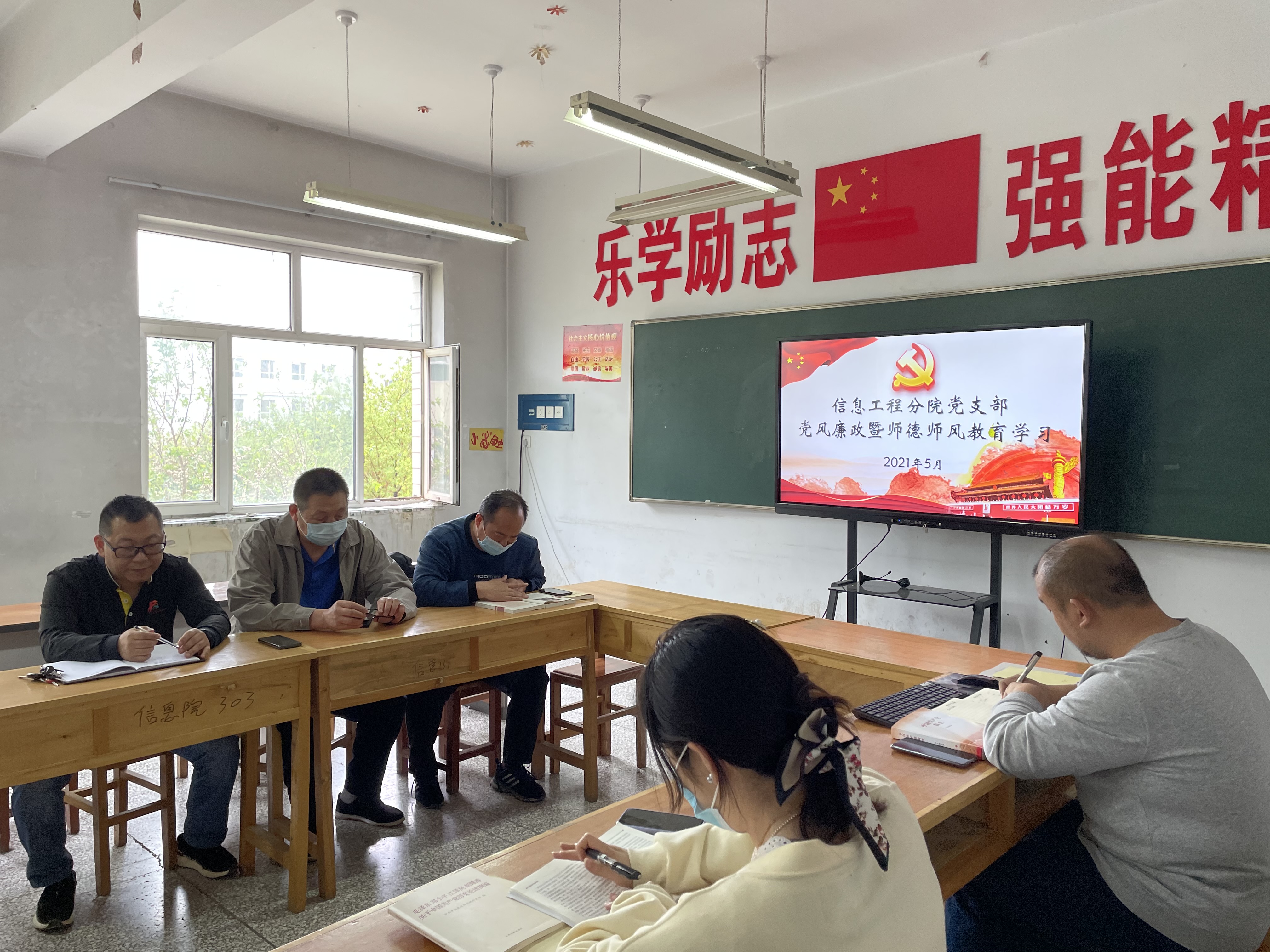 按照学院党委及纪委统一要求,信息工程分院每月坚持开展党风廉政主题教育活动。5月17日18:10,信息工程分院直属党支部组织全体党员在信息楼303室,开展“清风传家”党风廉政暨师德师风教育活动。活动由分院书记徐通主持。主要进行了“清风传家”——孙家栋同志事迹宣讲学习及优秀党员节目展播,播放了《榜样的力量——孔繁森》《党史教育——中国共产党为什么“能”》。